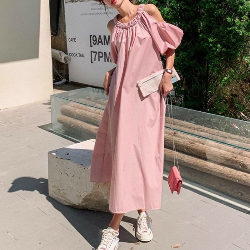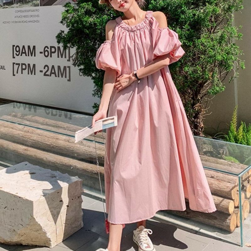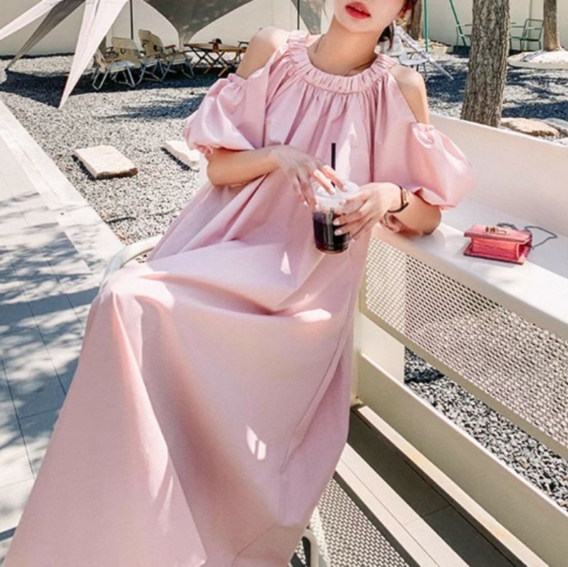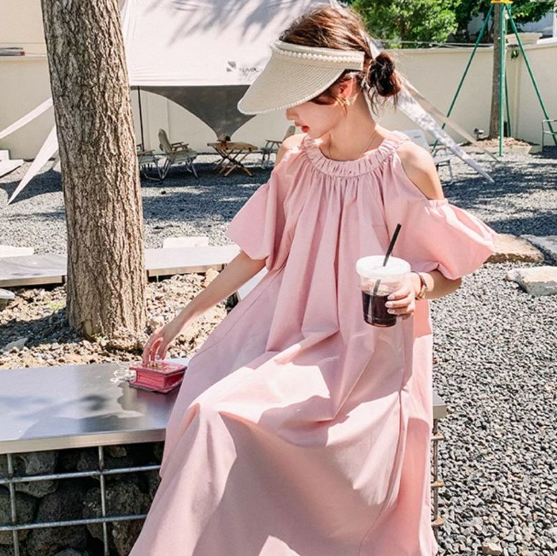 一部即納 2color オープンショルダー ロング ワンピース