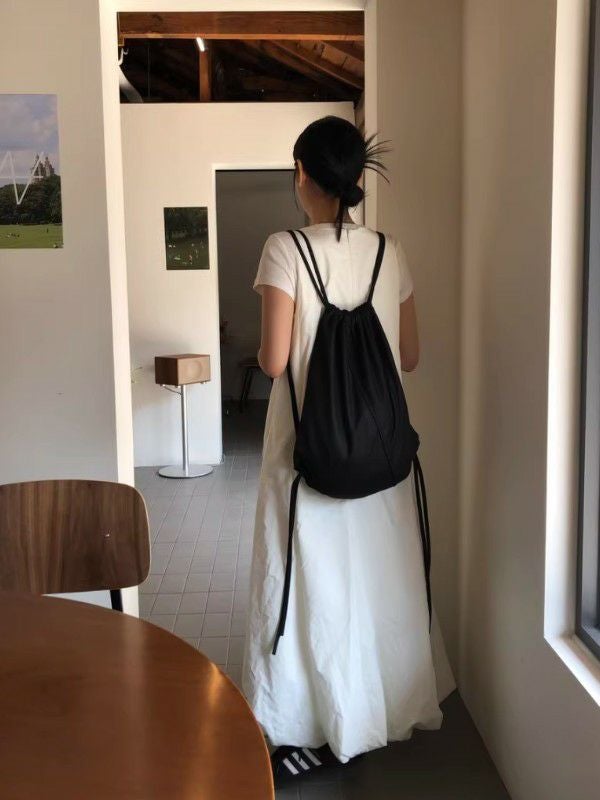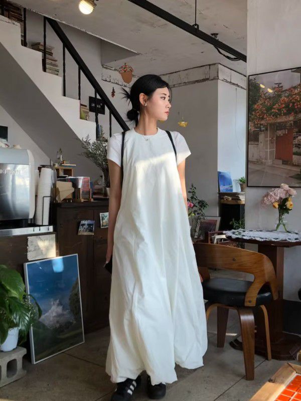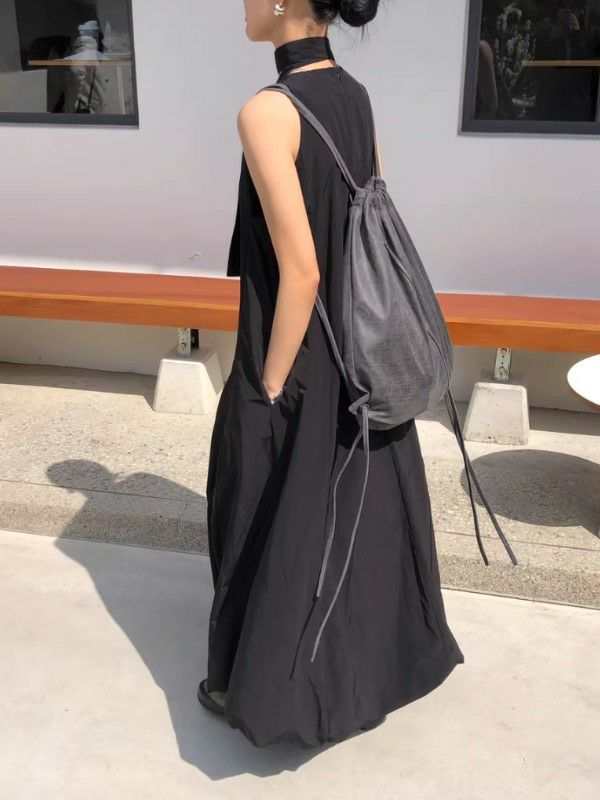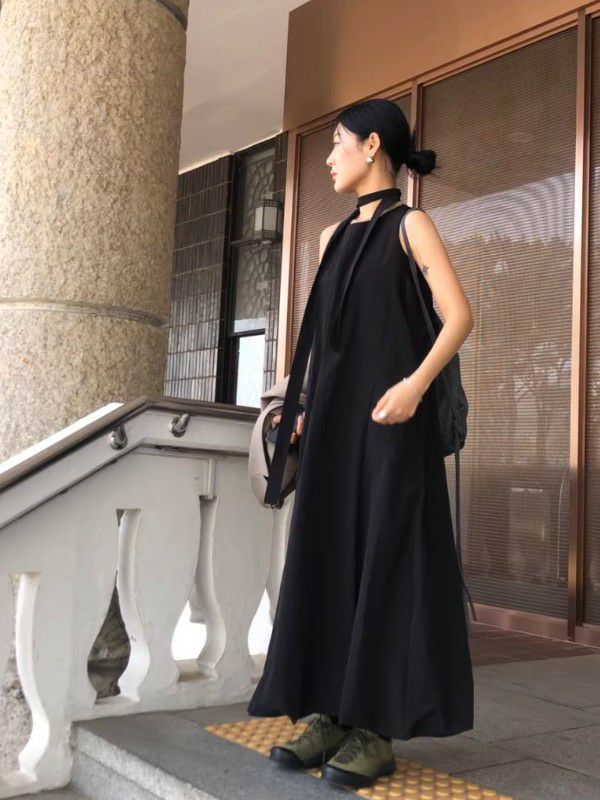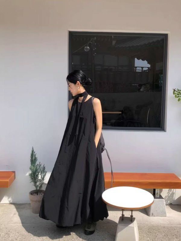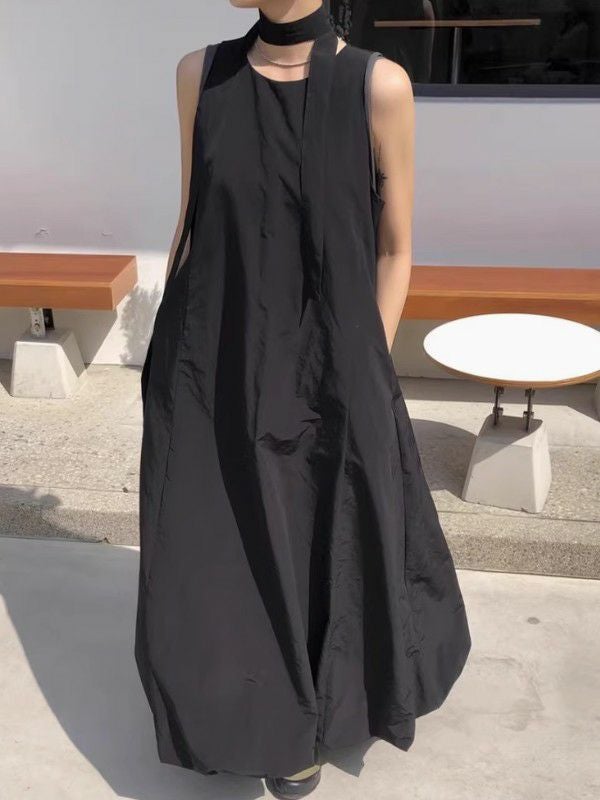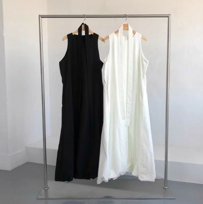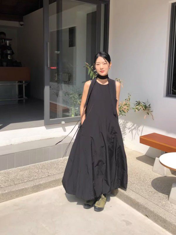 即納 2color 裾バルーン ノースリーブ ロングワンピース