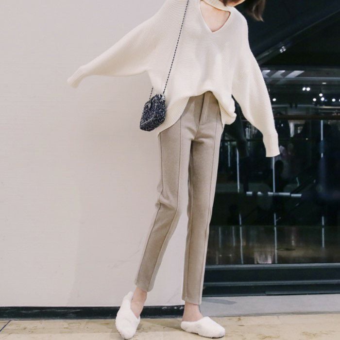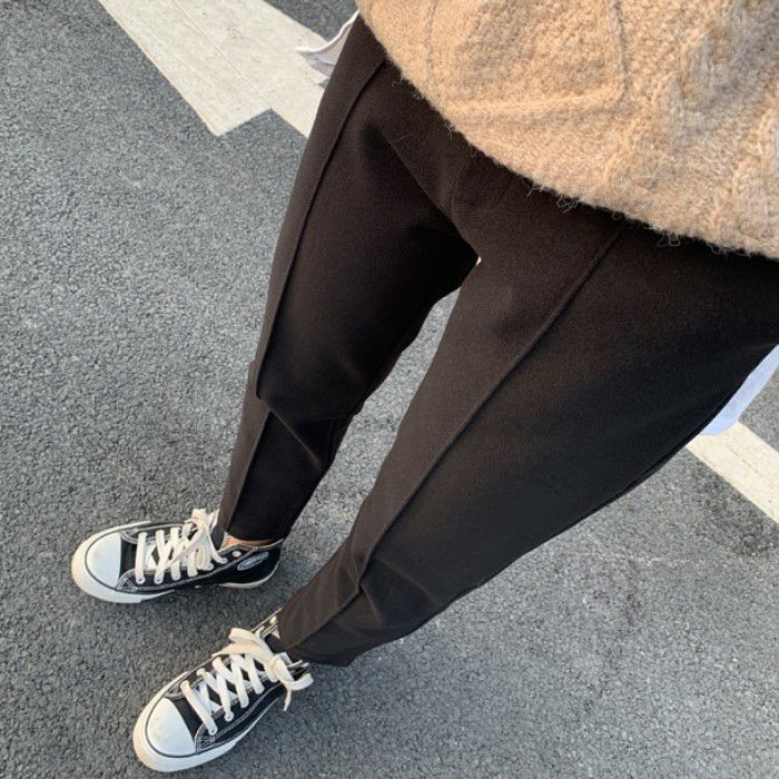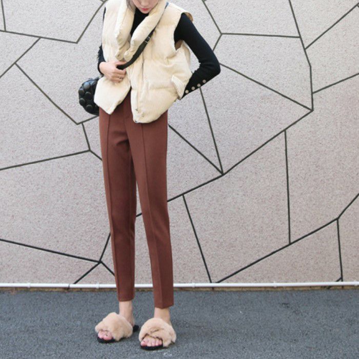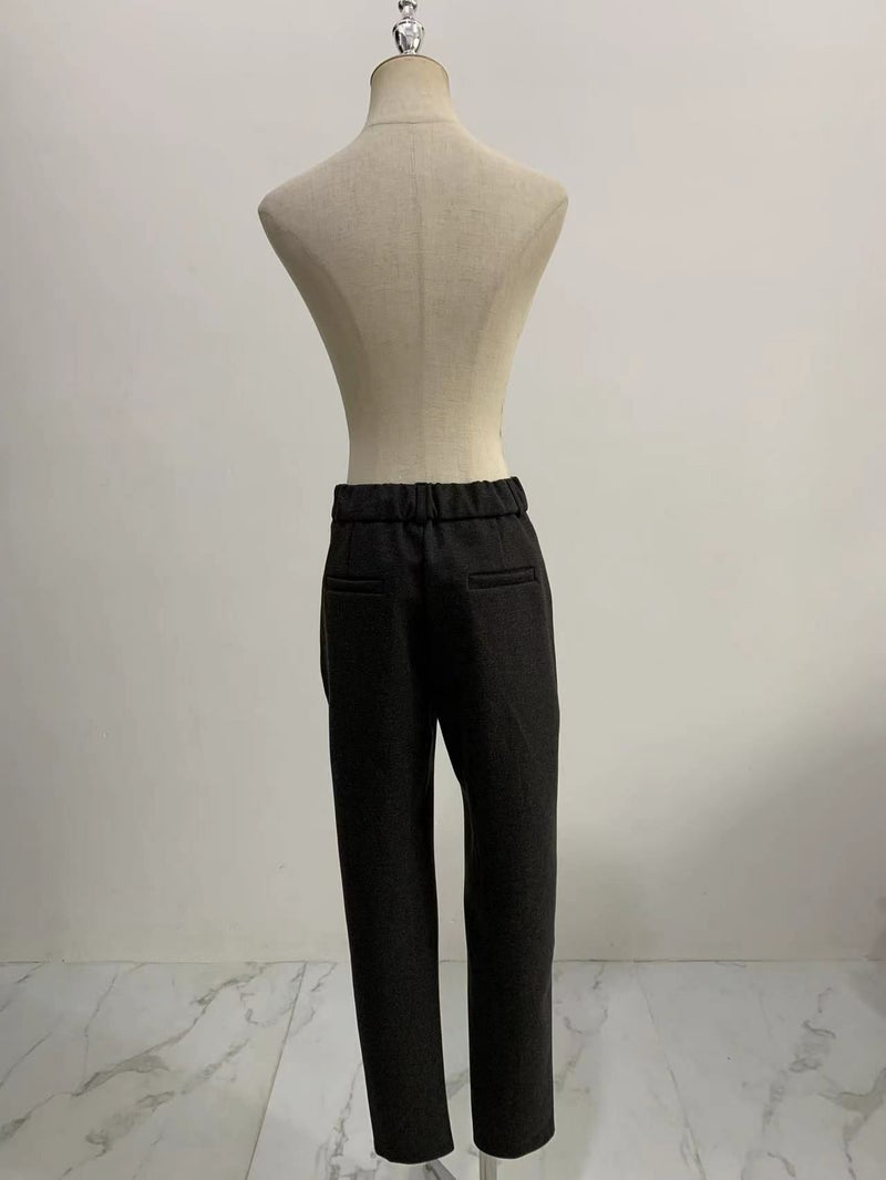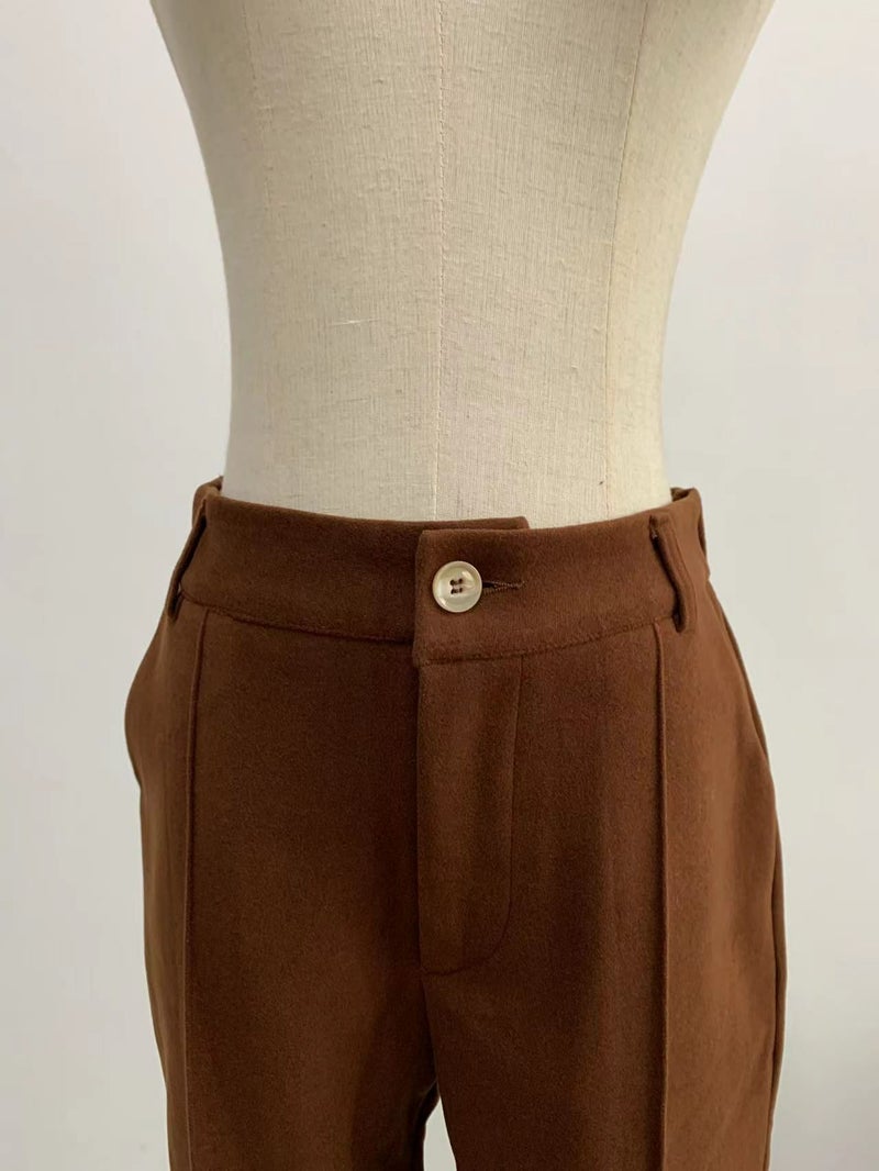 暖かみのある生地感の脚を綺麗に見せてくれるテーパードパンツ。