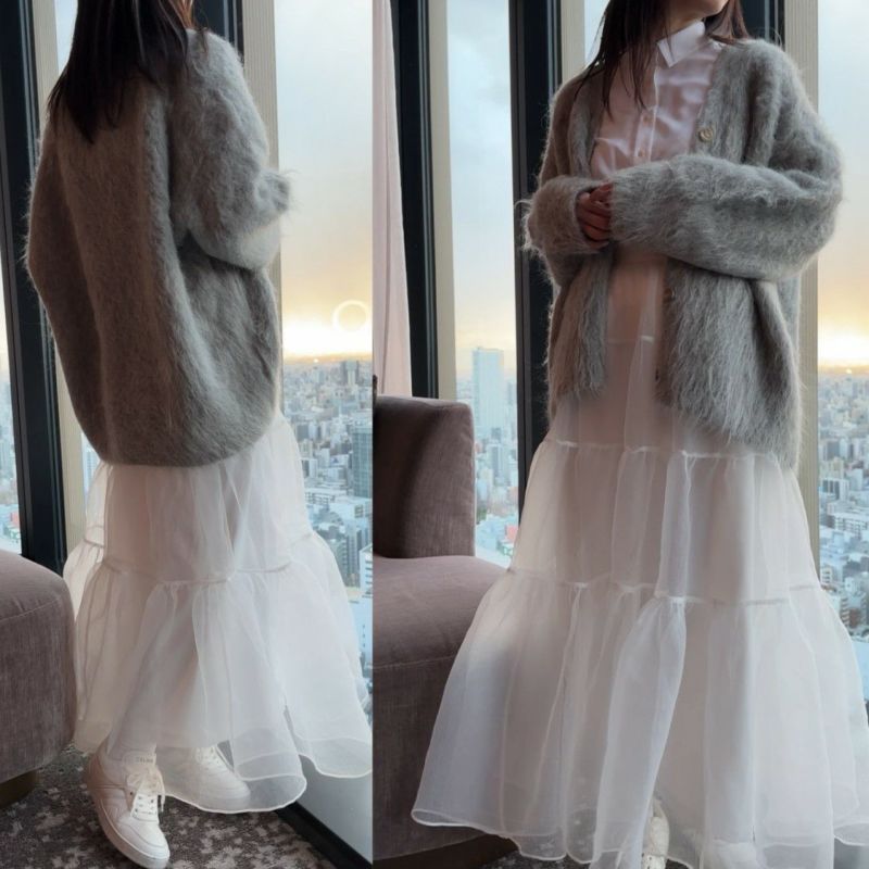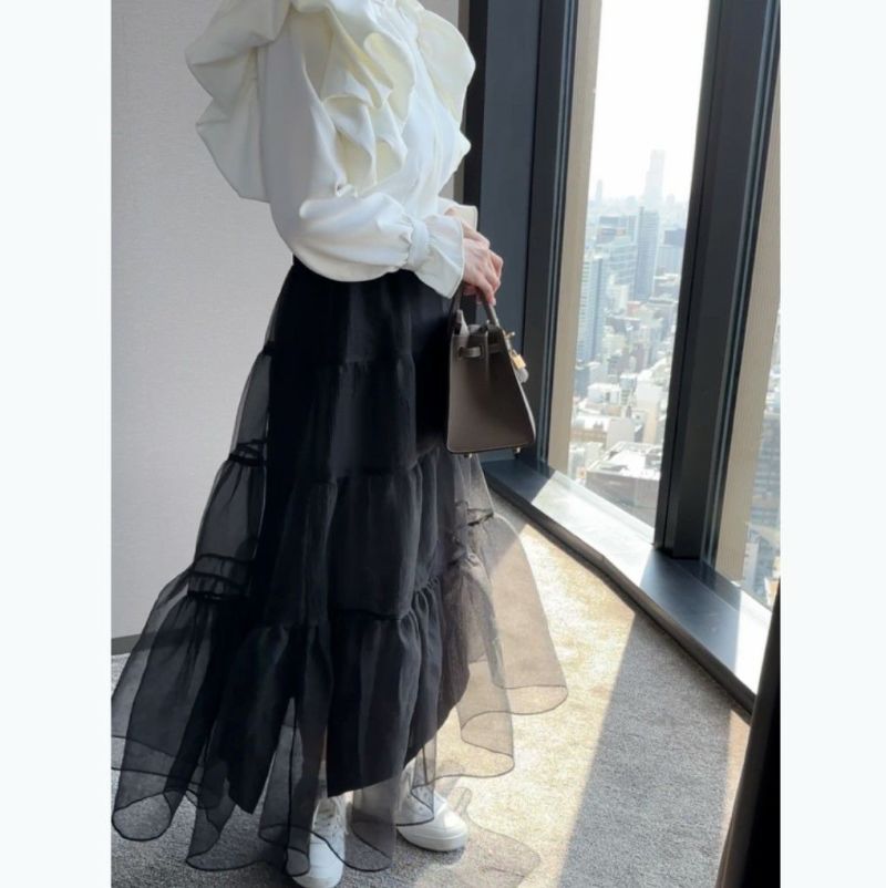 オーガンジーのシアー感が可愛いボリュームロングスカート