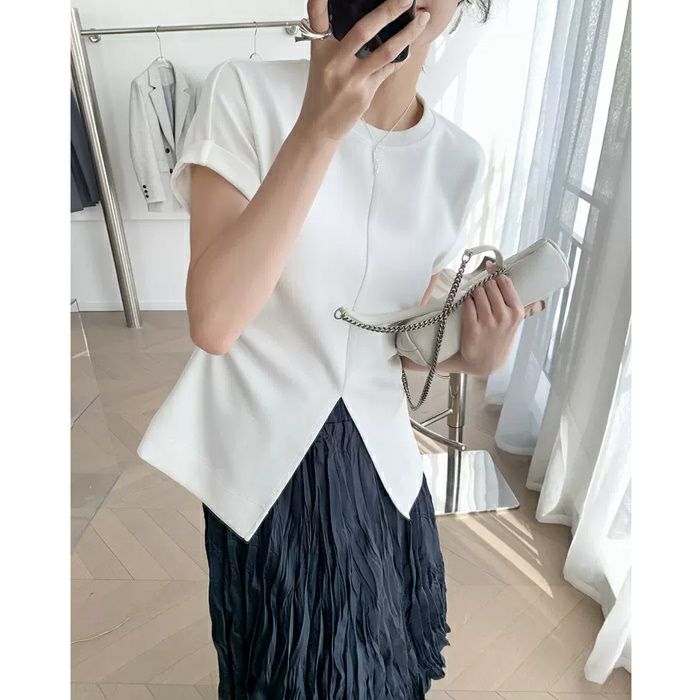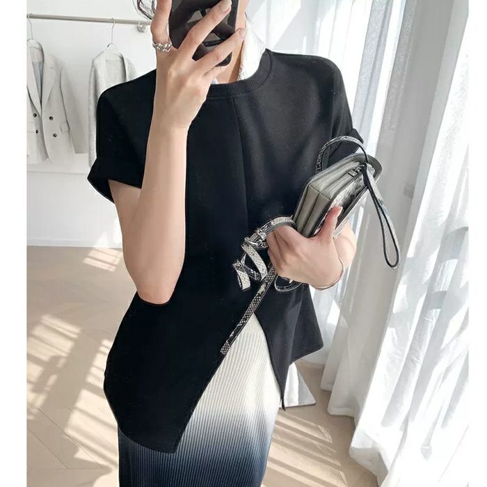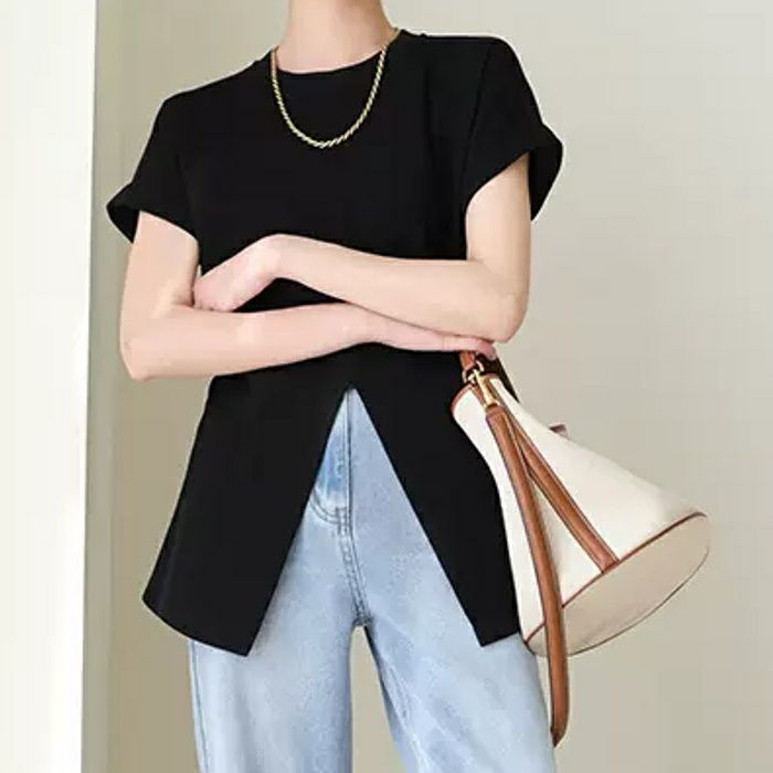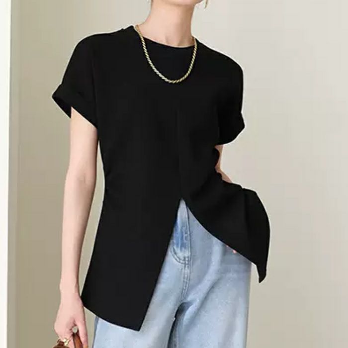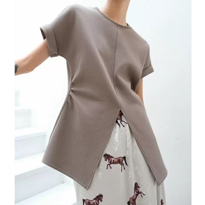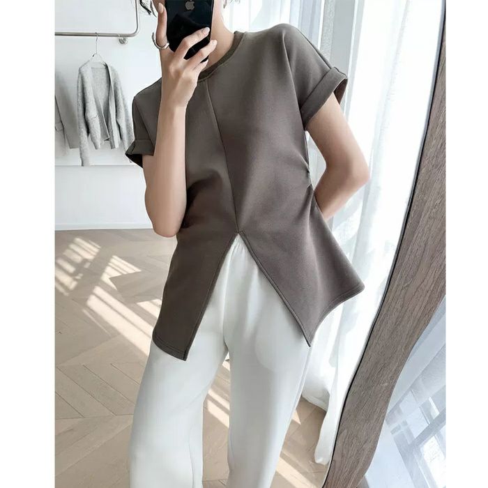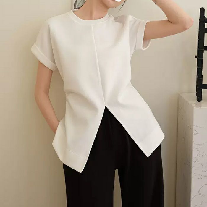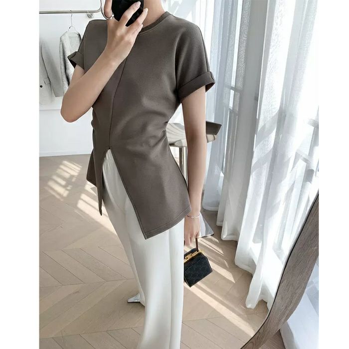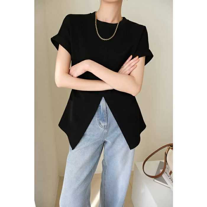 一部即納 3color フロント スリット ハーフスリーブ トップス