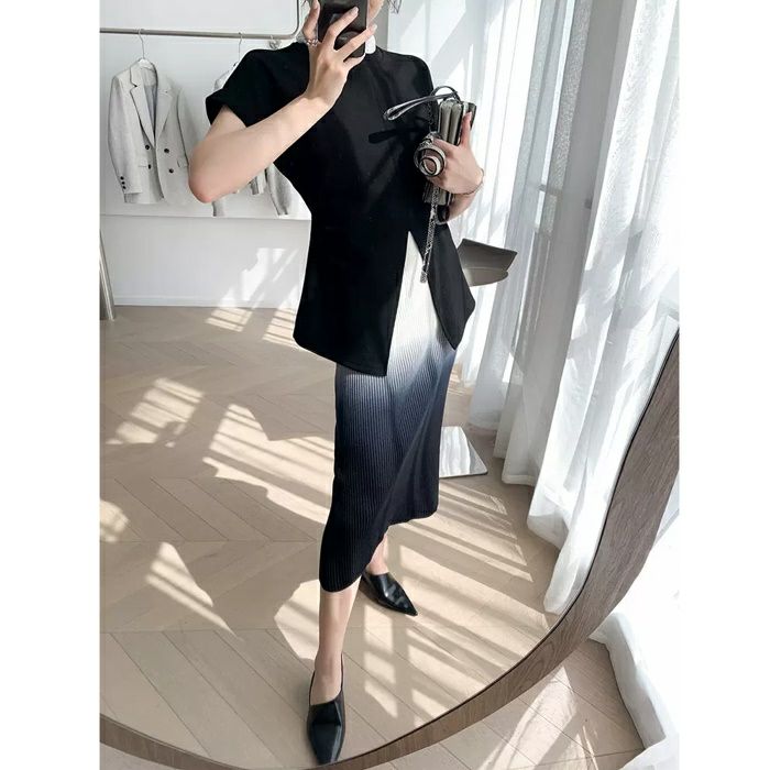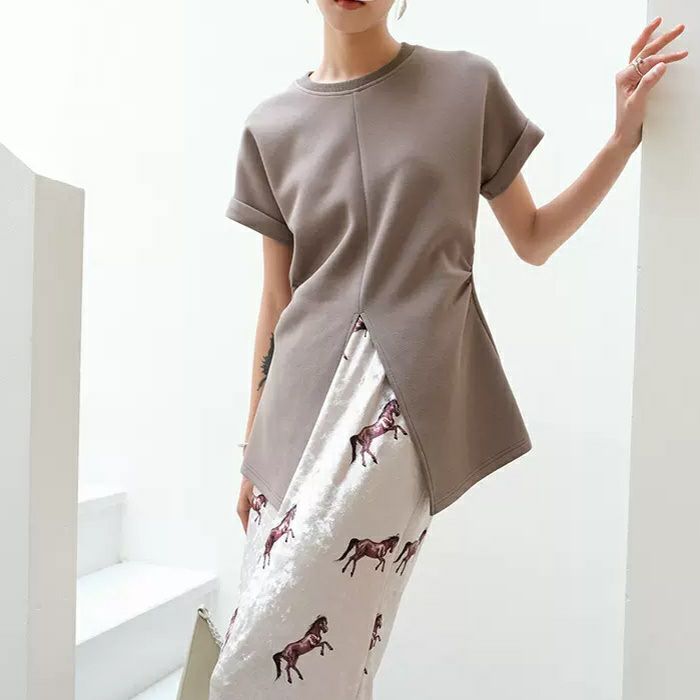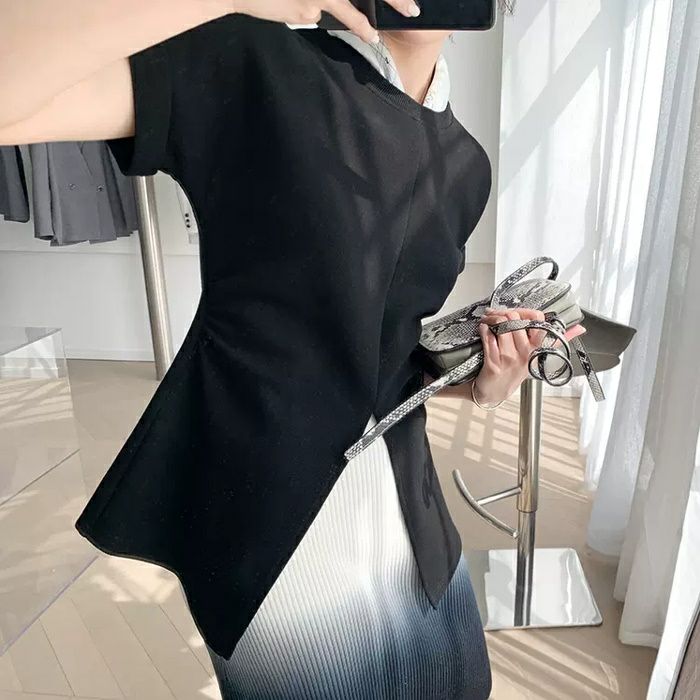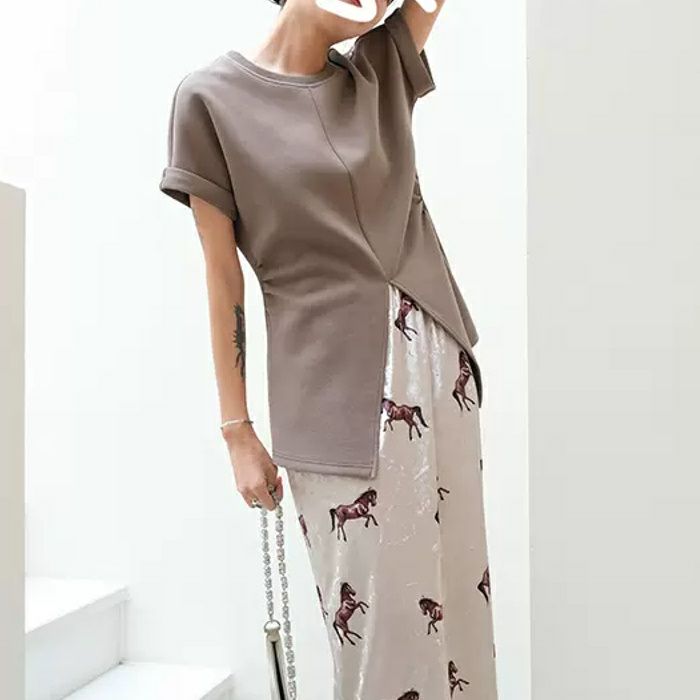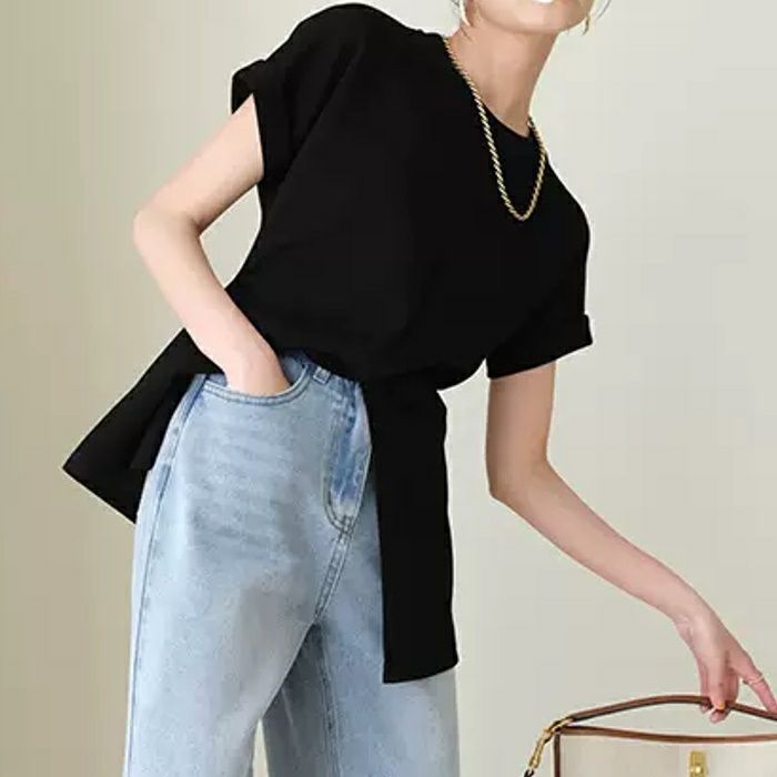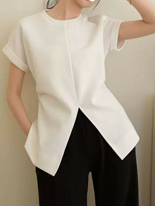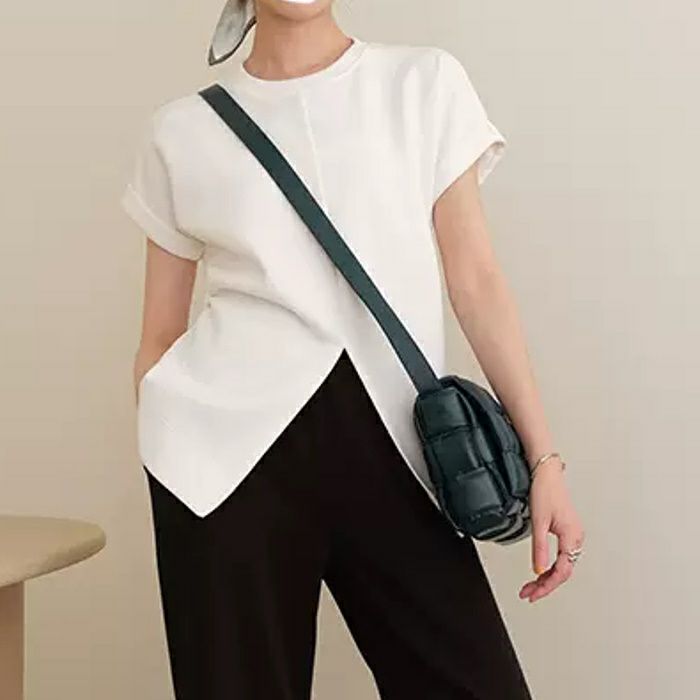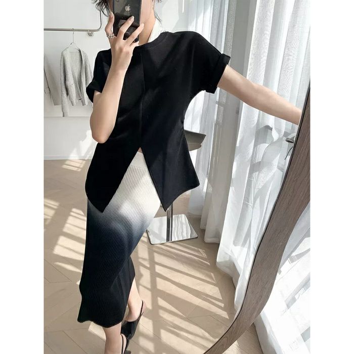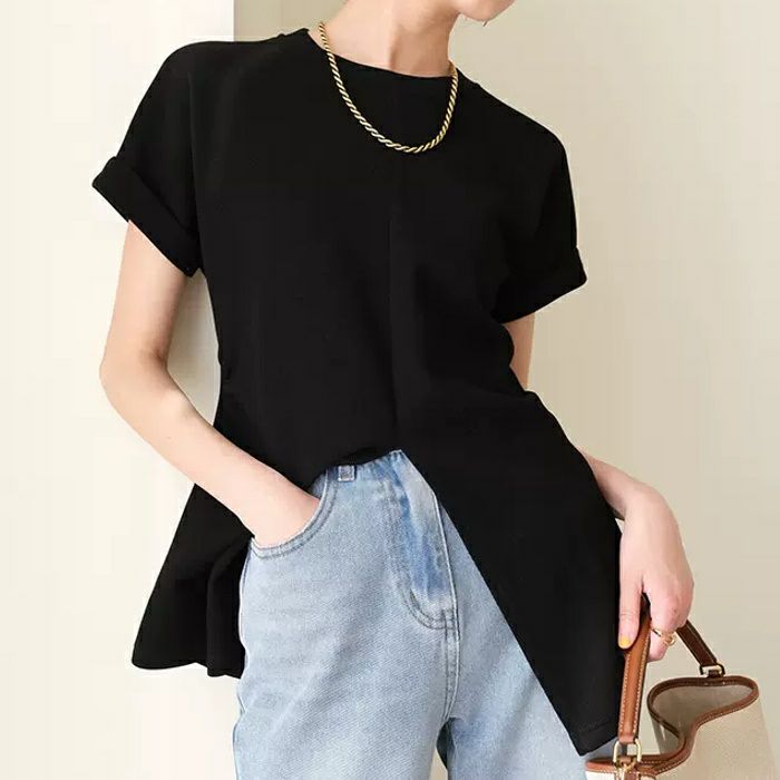 一部即納 3color フロント スリット ハーフスリーブ トップス