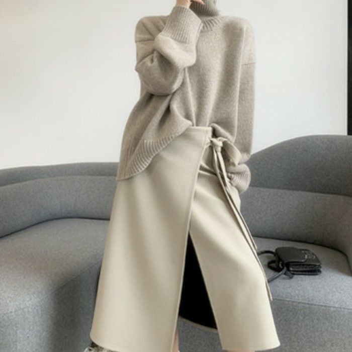 一部即納 3color ハートデザイン オーバーサイズ ハイネックニット