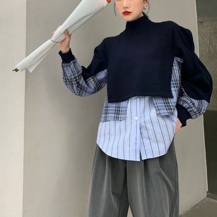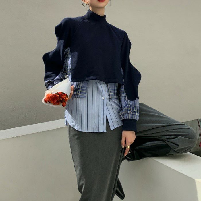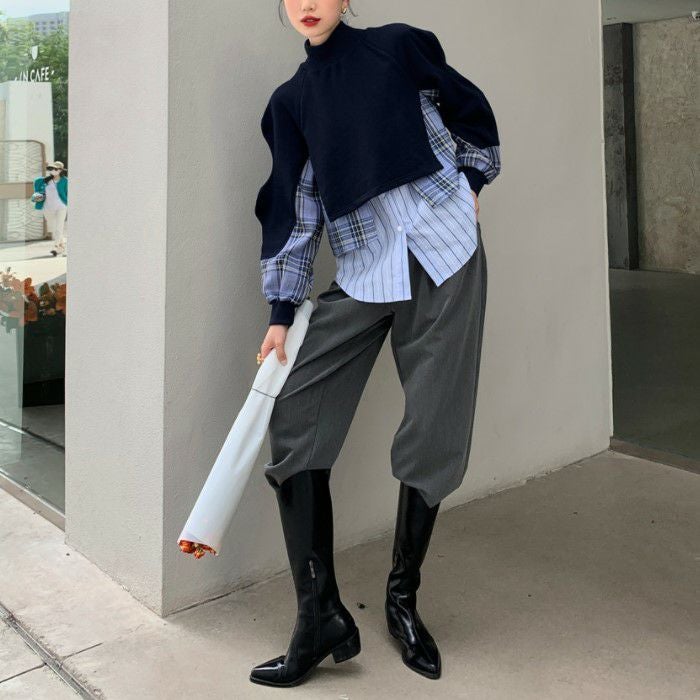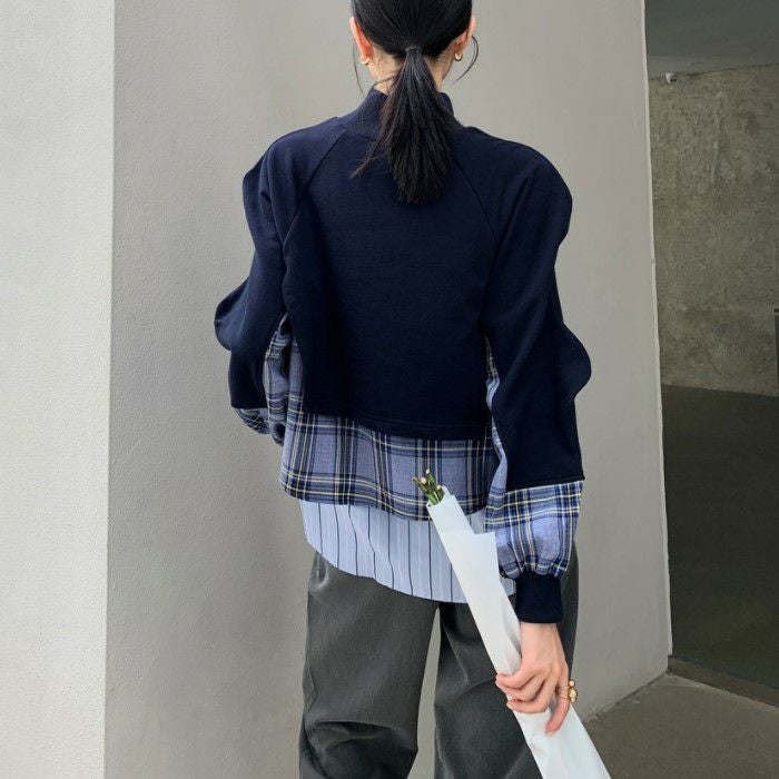 即納 ウェーブスリーブ ドッキング チェックシャツ スエット