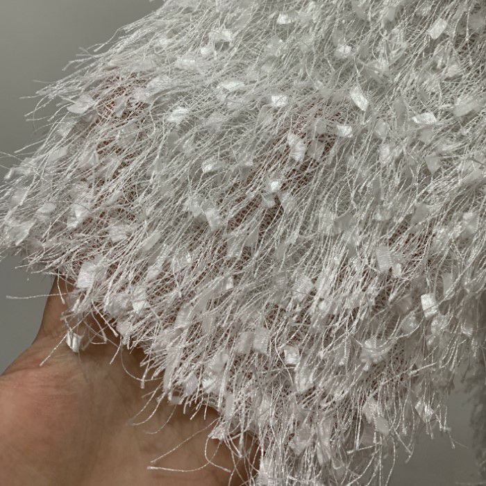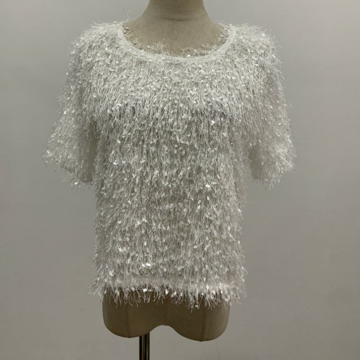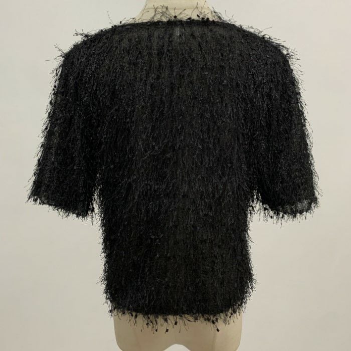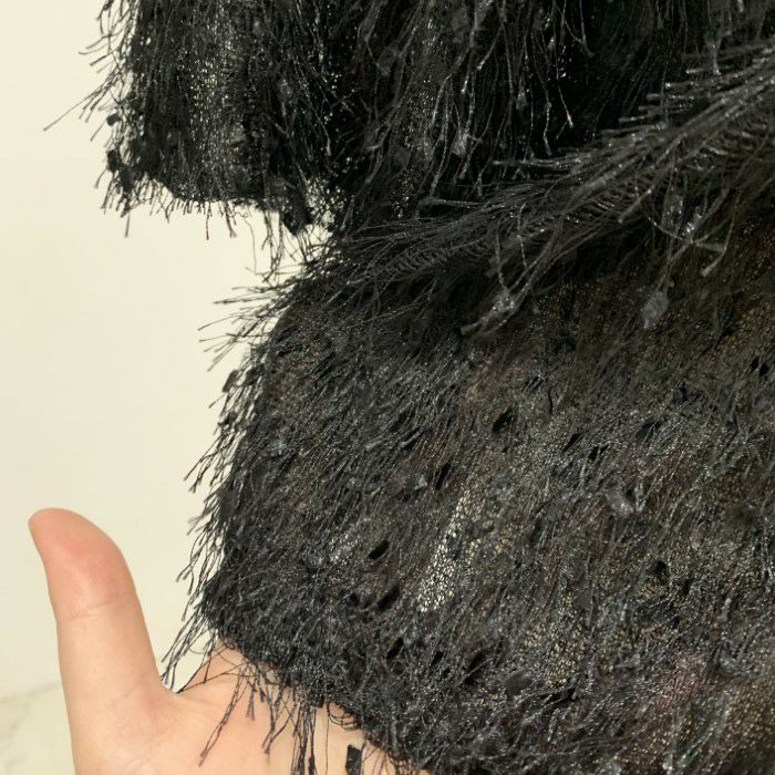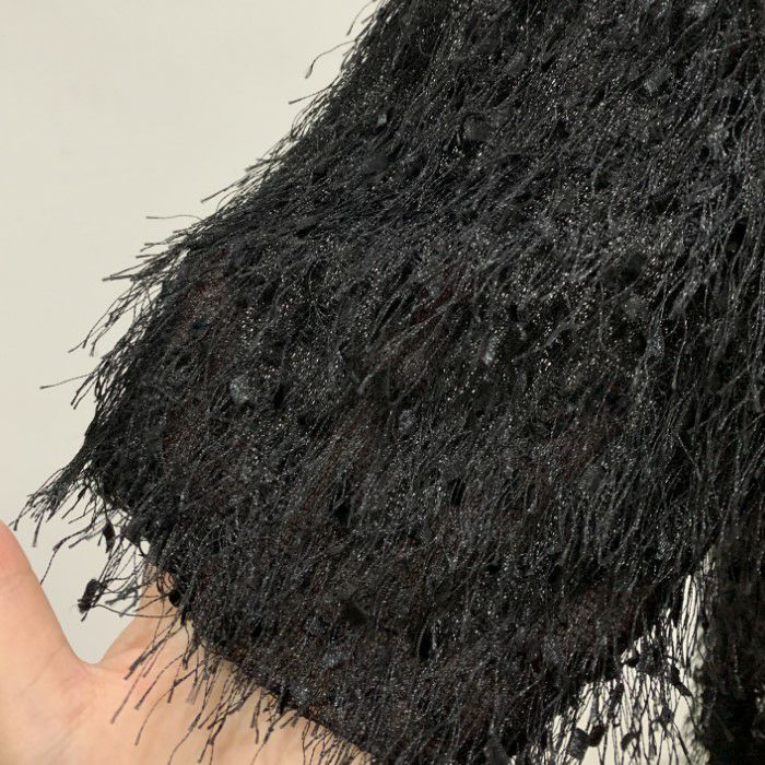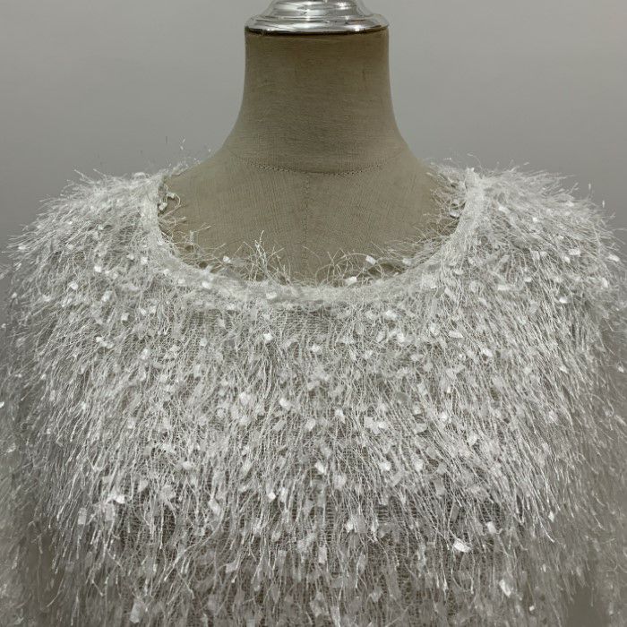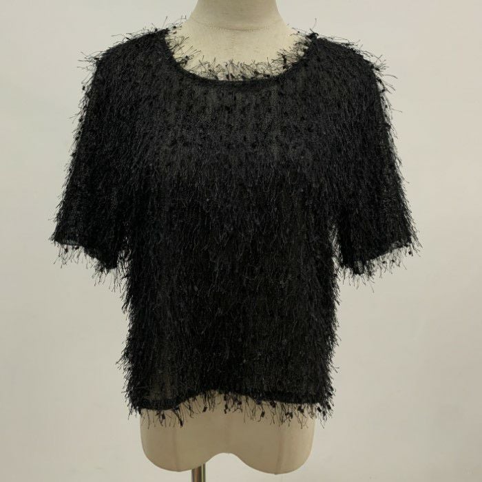 即納 フリンジ フェザー ノースリーブ トップス