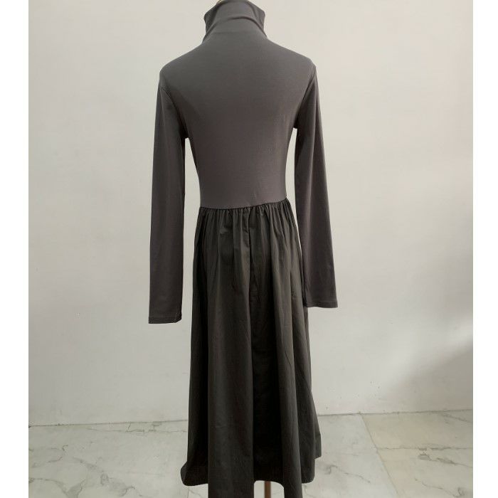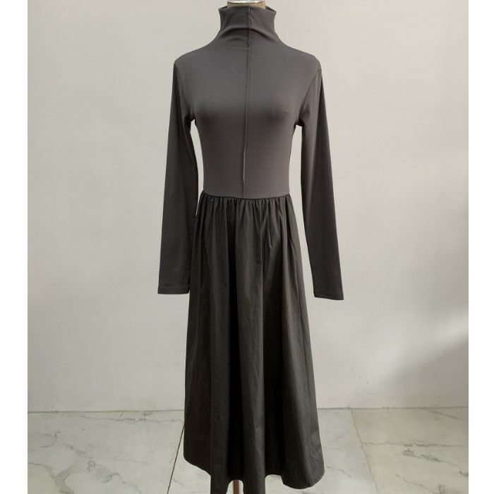予約 2color ハイネック ドッキング ロング フレア ワンピース