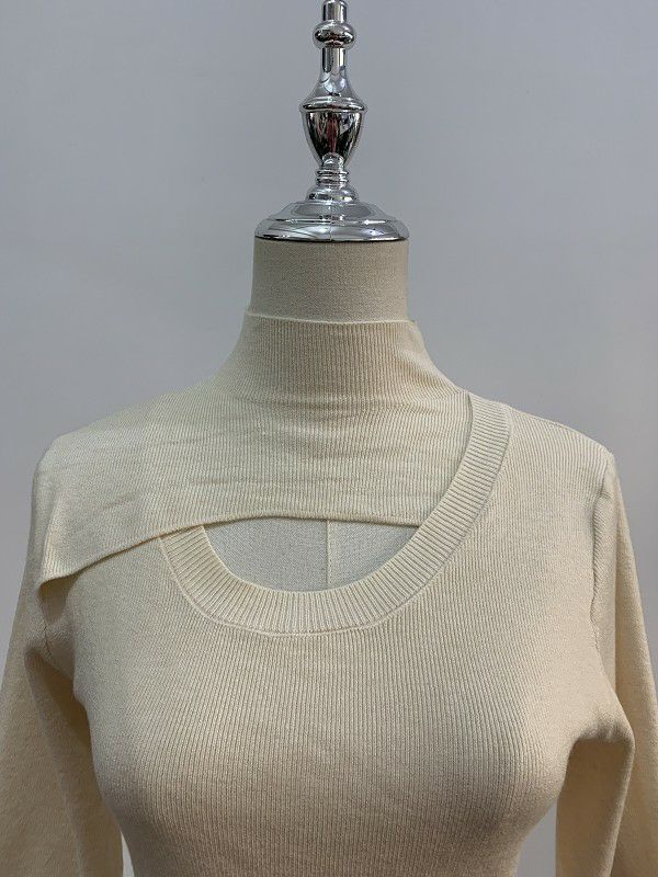 デコルテがカットされたモード感あるニットプルオーバー