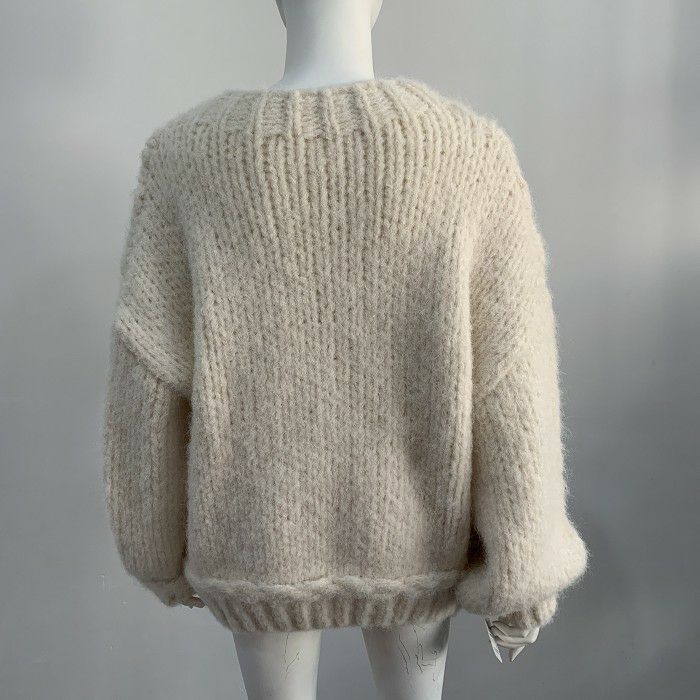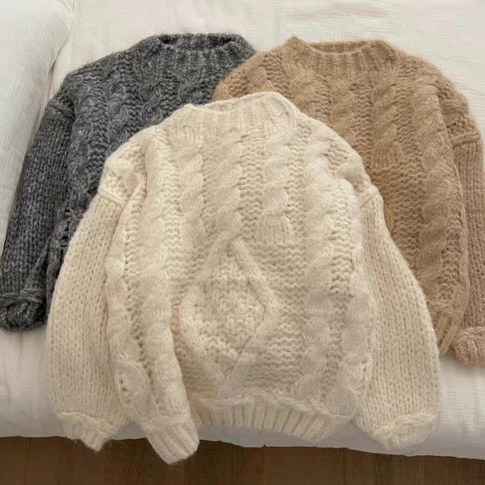 予約 3color WOOL オーバーサイズ ケーブル クルーネックニット