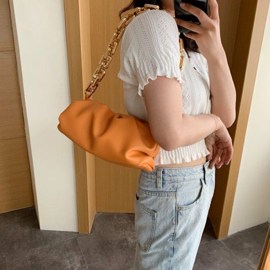 予約* 6color ビッグ チェーンハンドル ポーチ バッグ ハンドバッグ