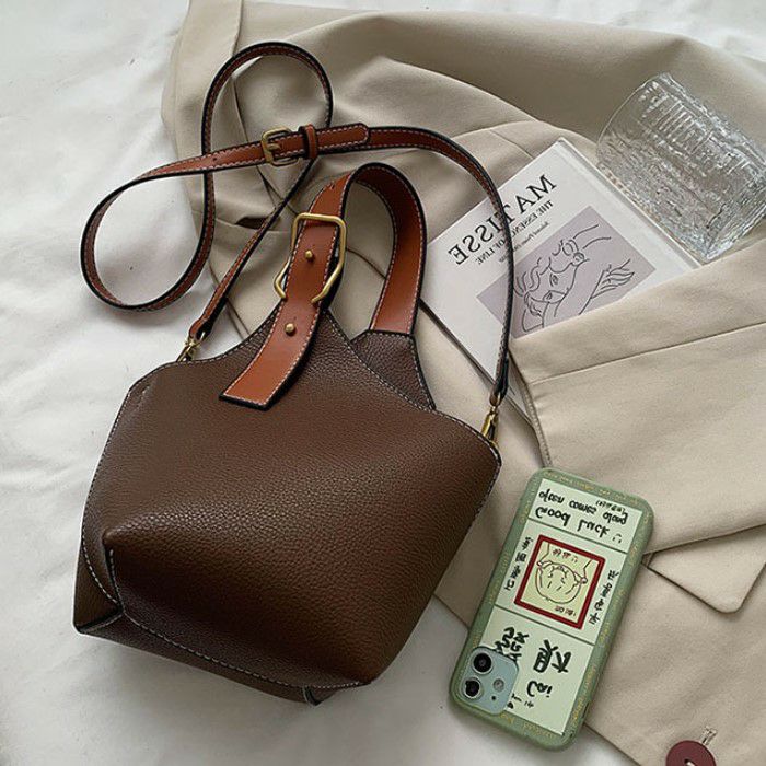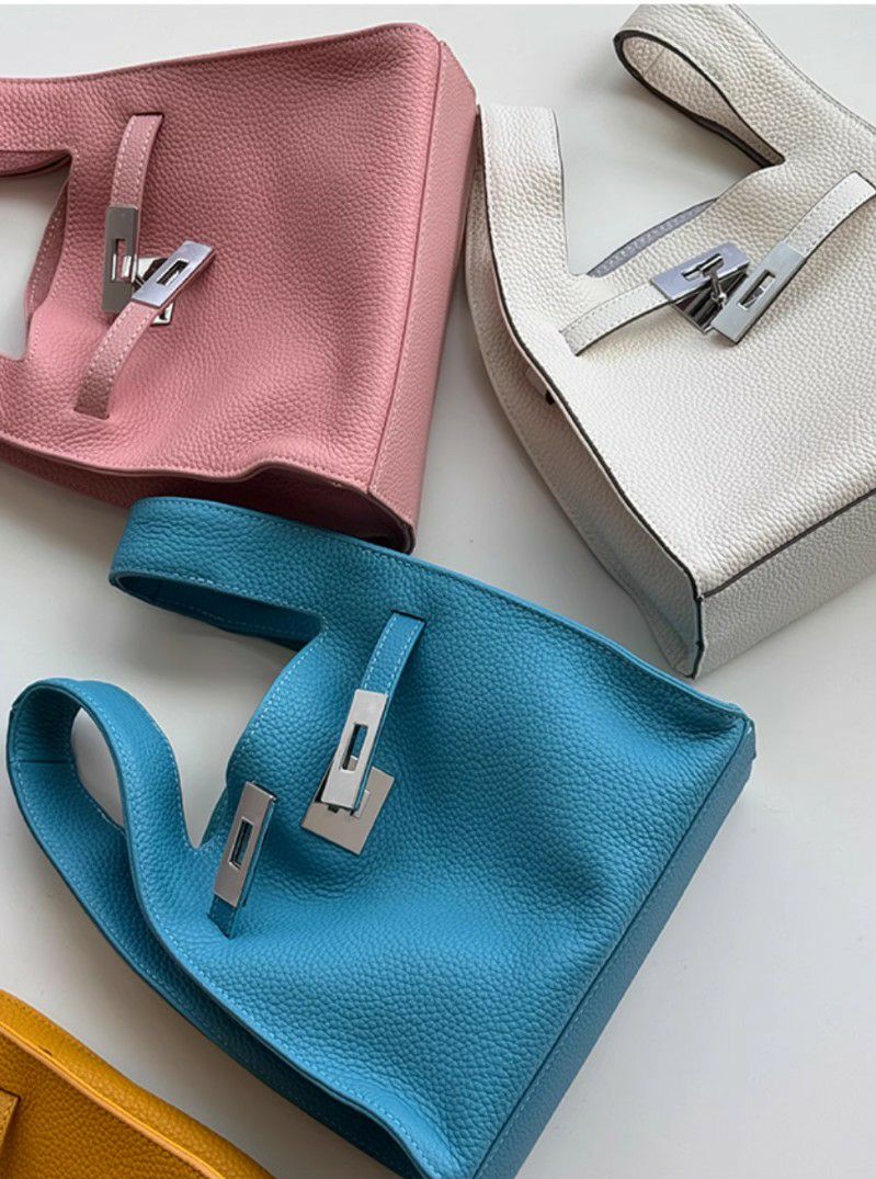 予約 8color リアルレザー バケツ型 ハンドバッグ