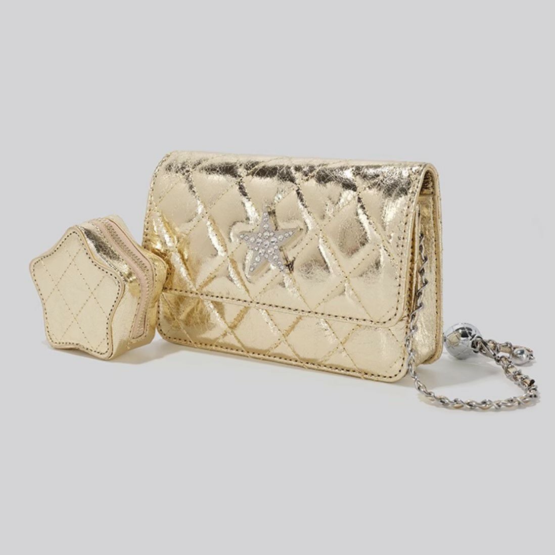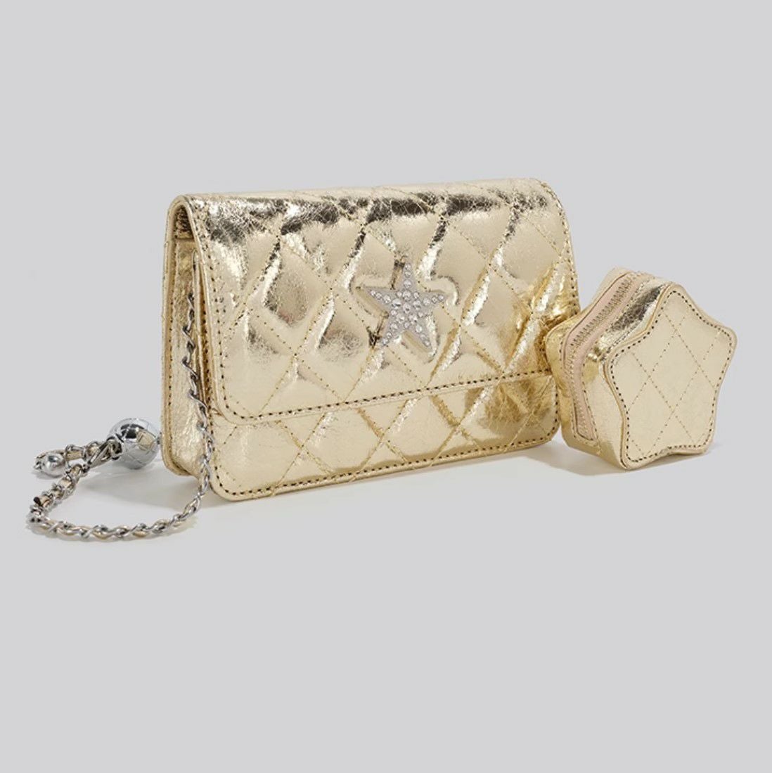 予約 5color ポーチ付き キルト チェーン バッグ