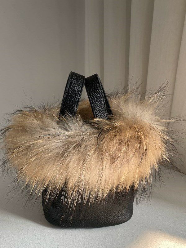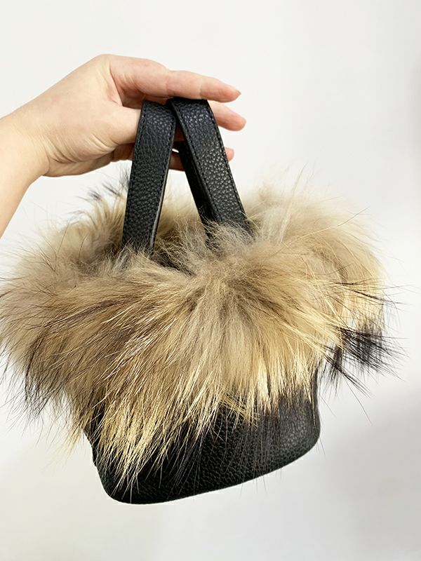 予約 リアルレザー ラクーンファー バケットバッグ(2サイズ展開)