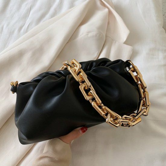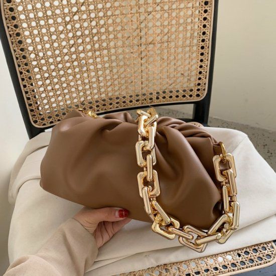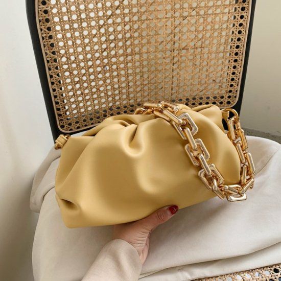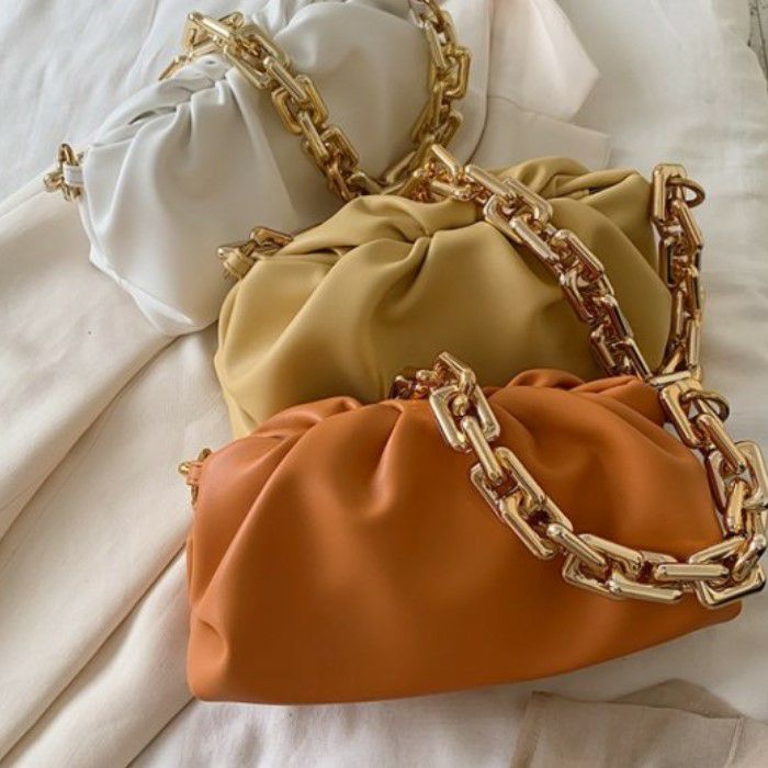 大きなチェーンが連なったハンドルが特徴的なバッグ。