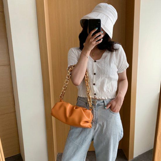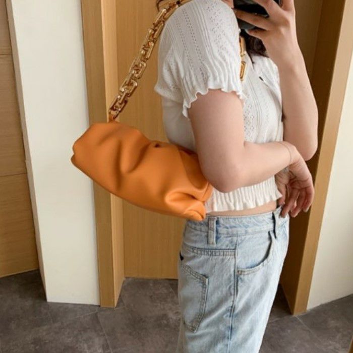 予約* 6color ビッグ チェーンハンドル ポーチ バッグ ハンドバッグ