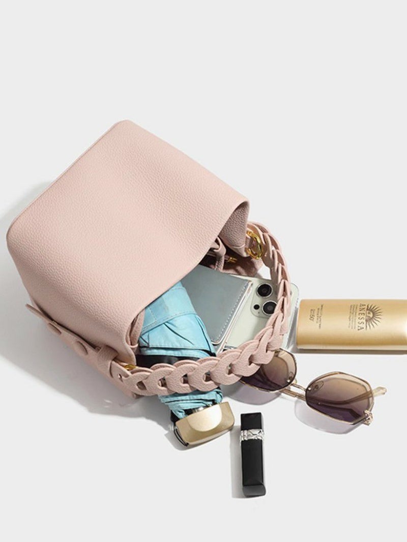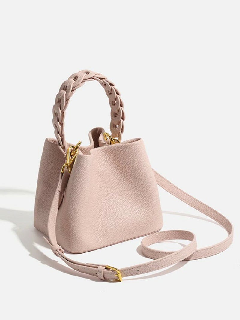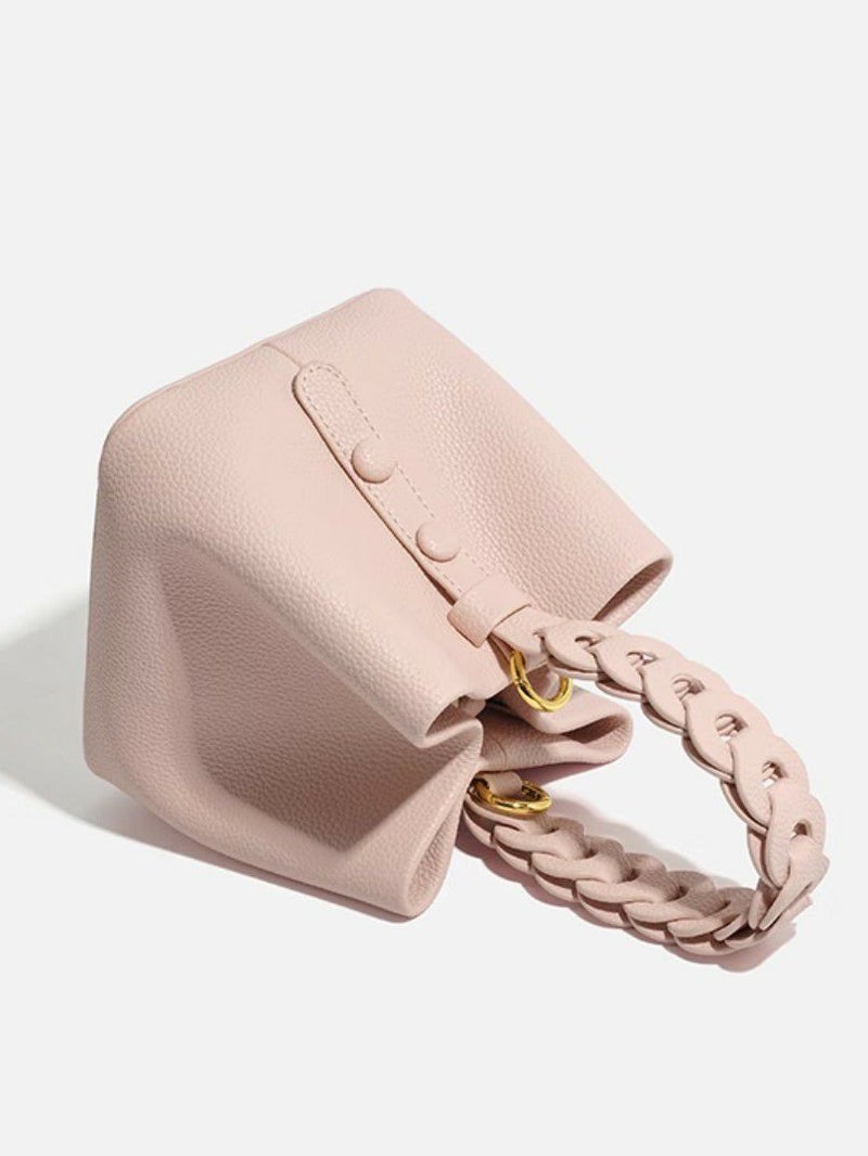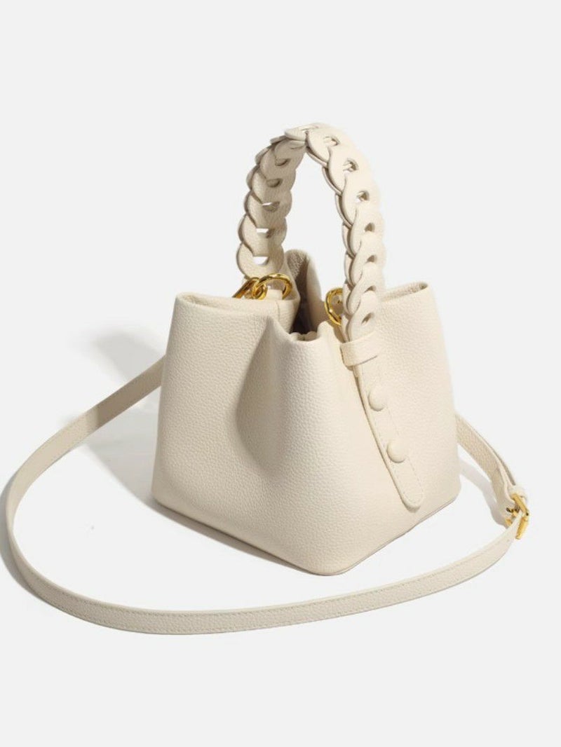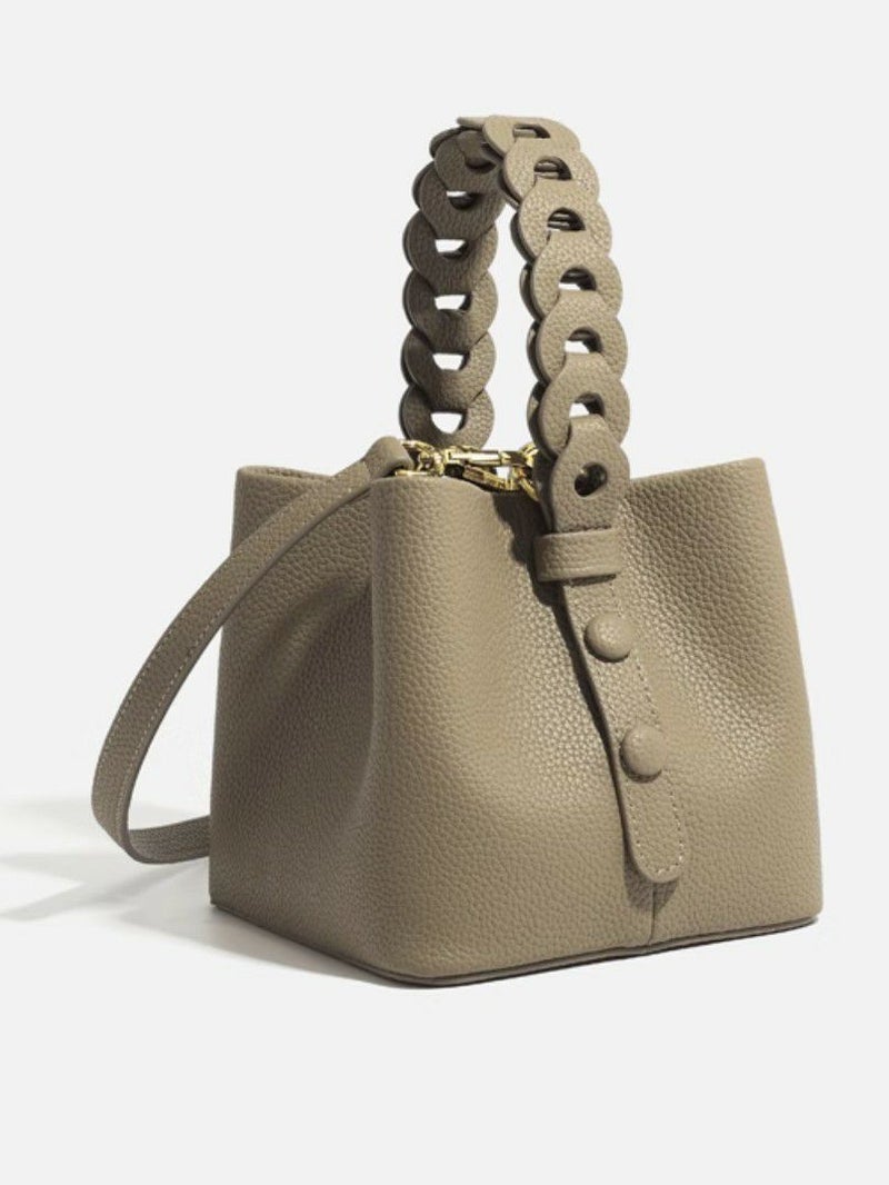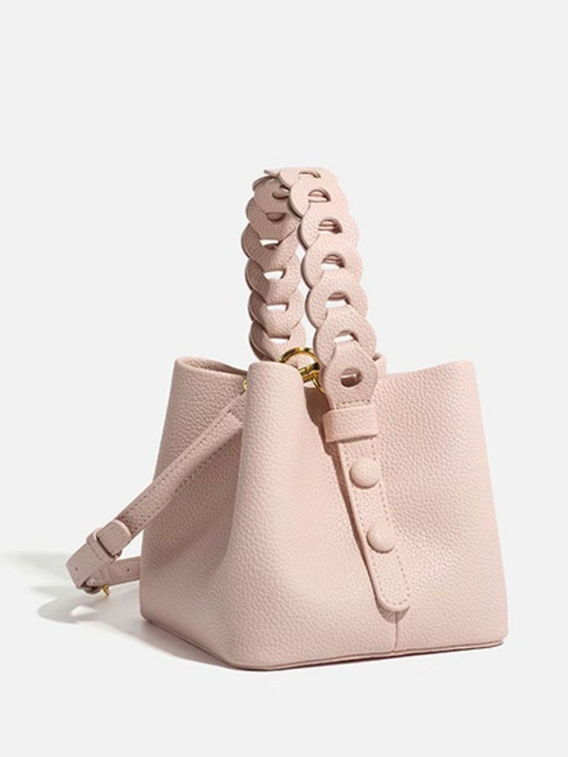 リングが並んだスカラップハンドルが可愛いリアルレザーバック