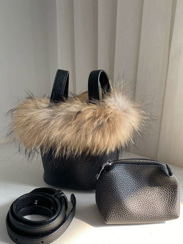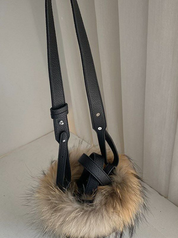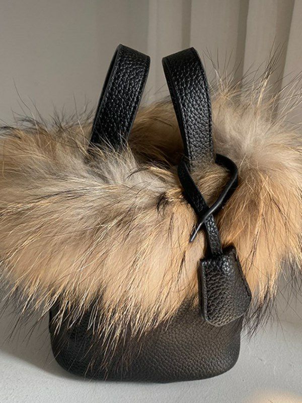 予約 リアルレザー ラクーンファー バケットバッグ(2サイズ展開)