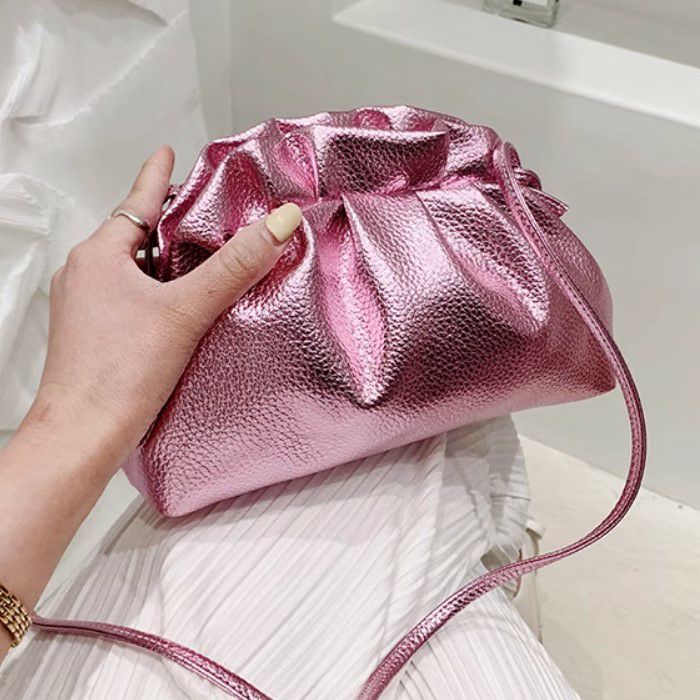 予約 6color ショルダー プリーツ ハーフムーン BAG