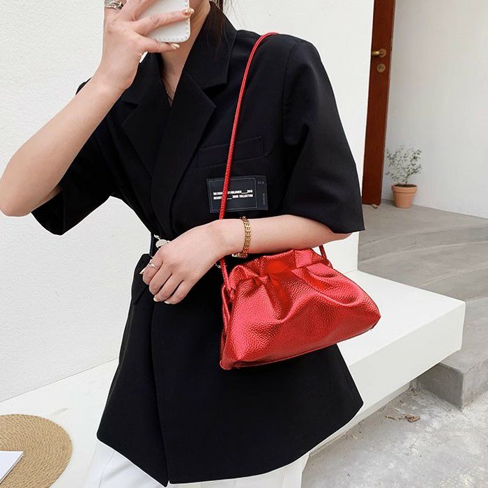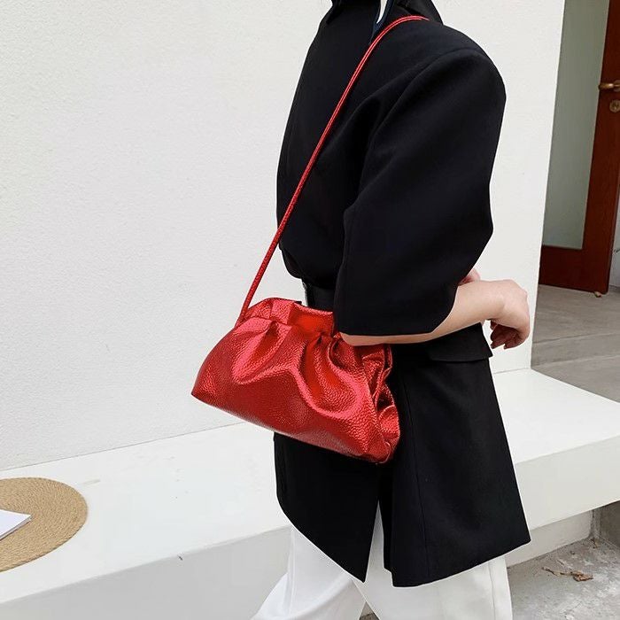 予約 6color ショルダー プリーツ ハーフムーン BAG