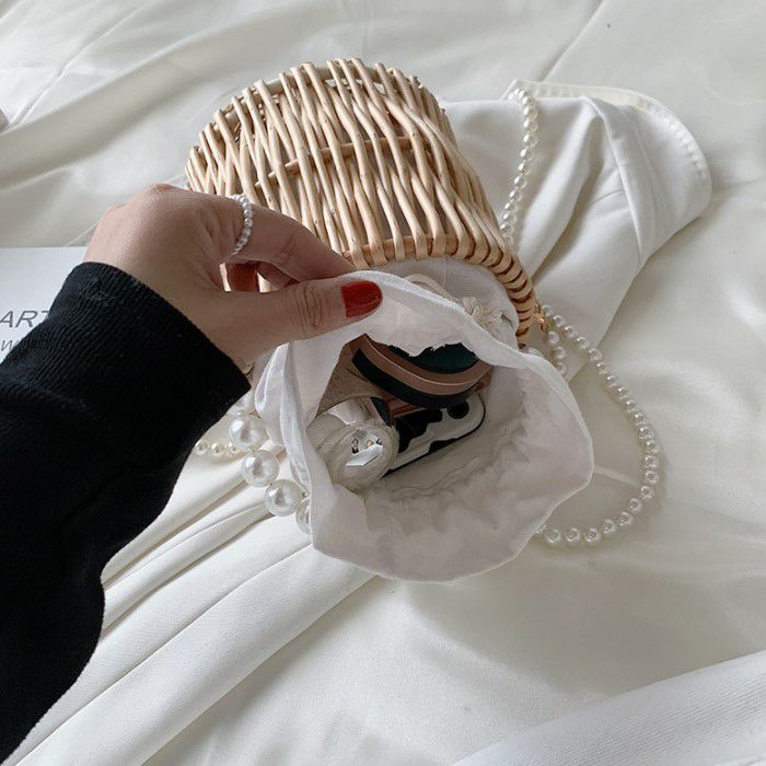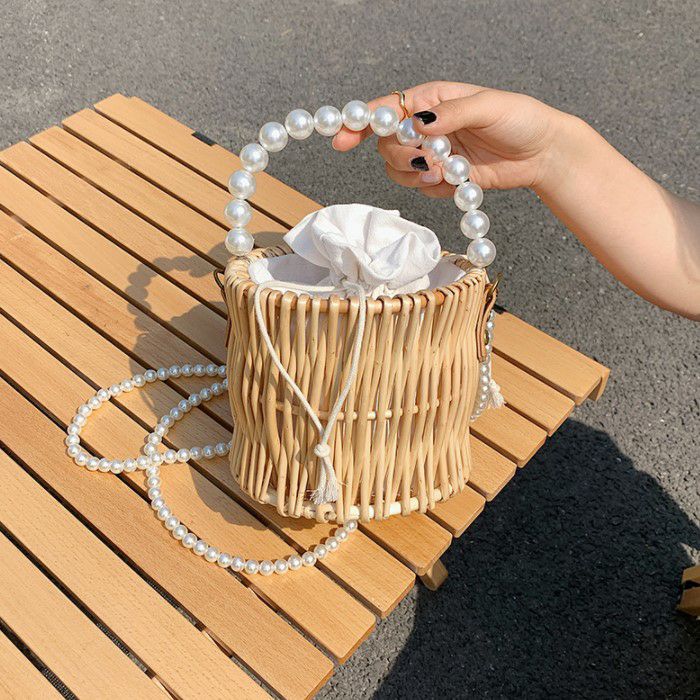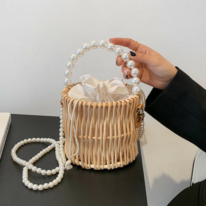 4. 予約* 2way ラタン パールハンドル バケツ型 かごバッグ ショルダーバッグ ハンドバッグ
