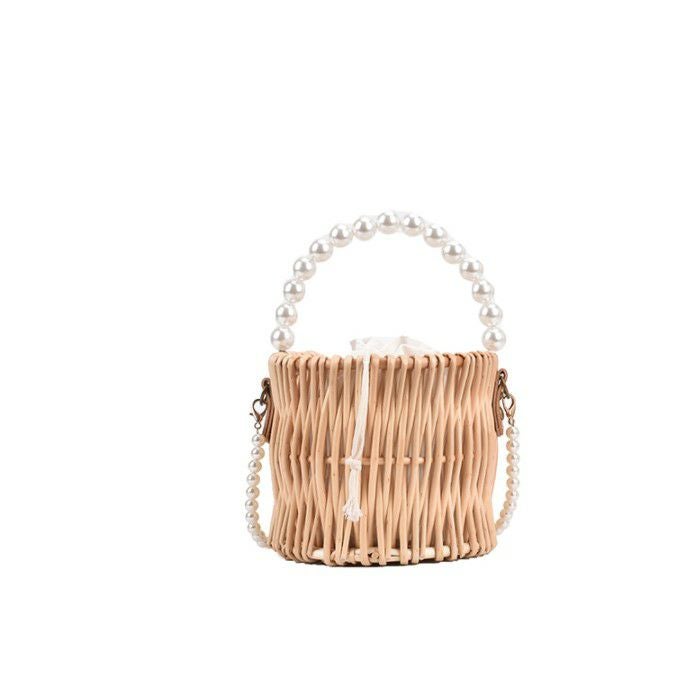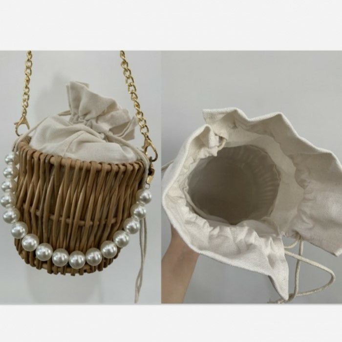 予約* 2way ラタン パールハンドル バケツ型 かごバッグ ショルダーバッグ ハンドバッグ
