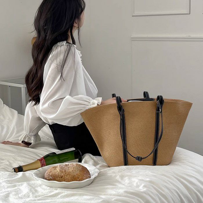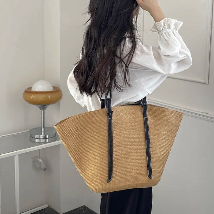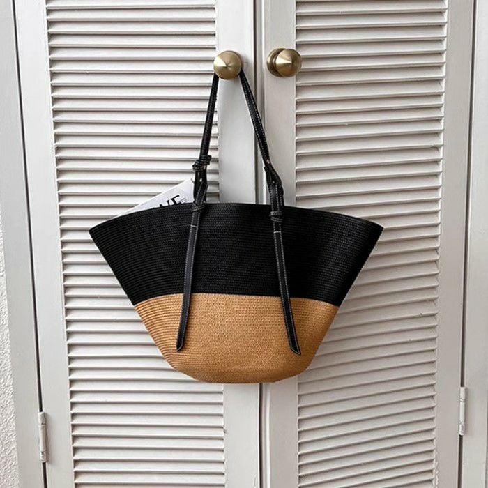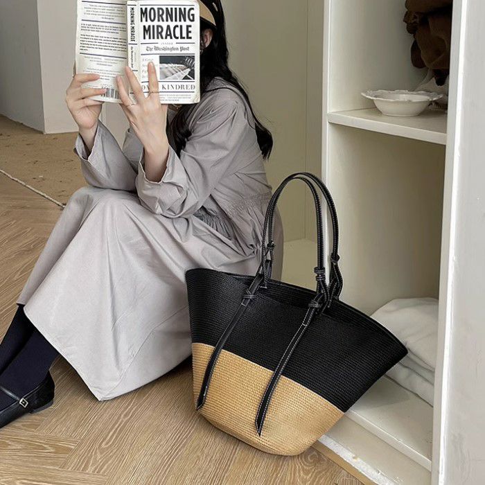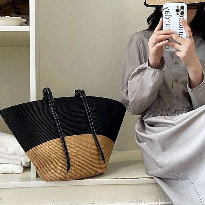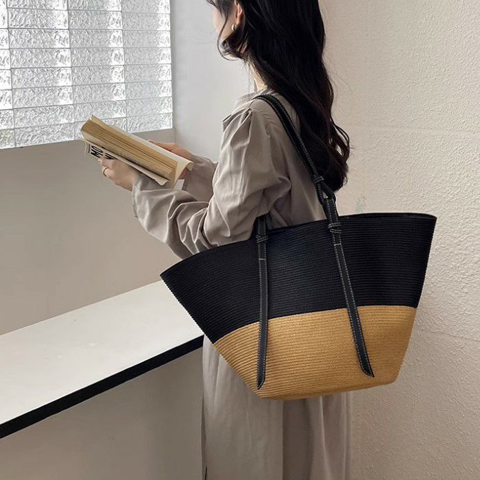 バイカラーが可愛いストロー素材の大きめサイズトートバッグ