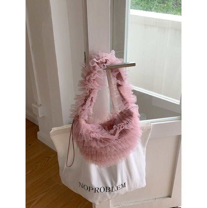 予約 4color チュール ハーフムーン ショルダー バック