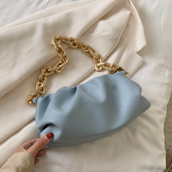 大きなチェーンが連なったハンドルが特徴的なバッグ。