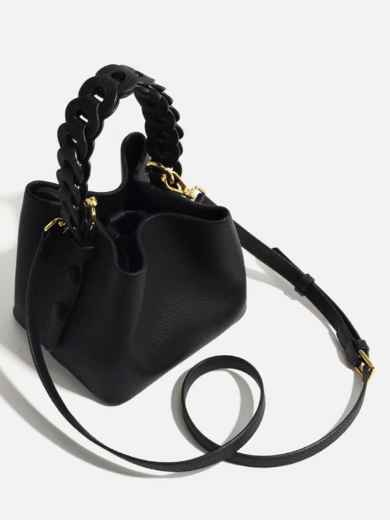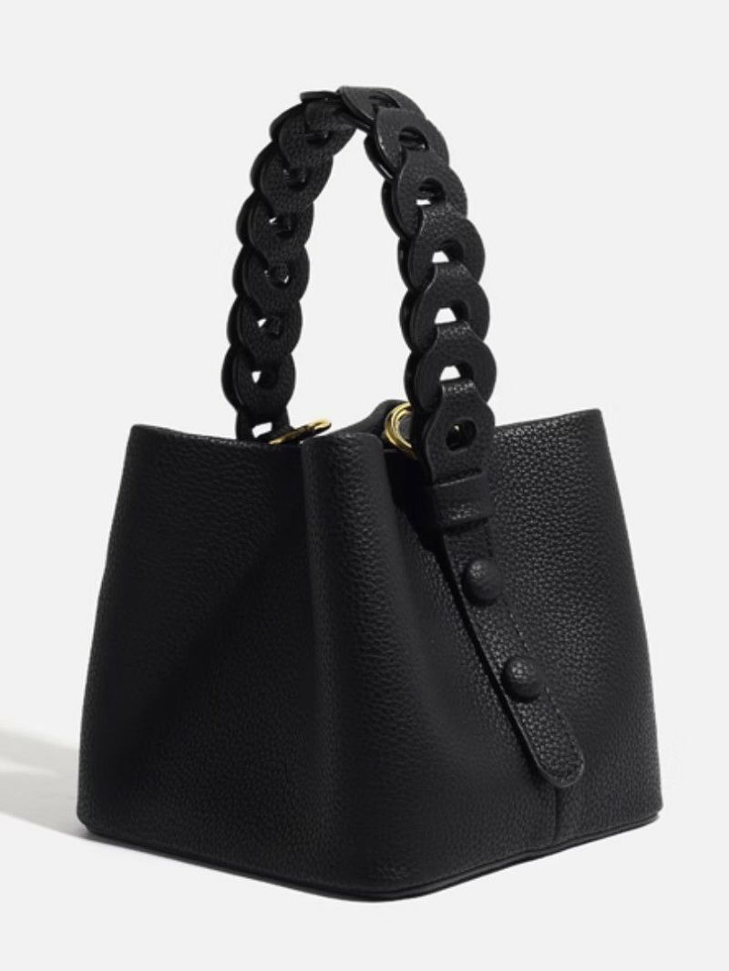 リングが並んだスカラップハンドルが可愛いリアルレザーバック