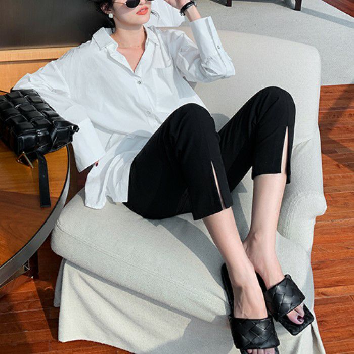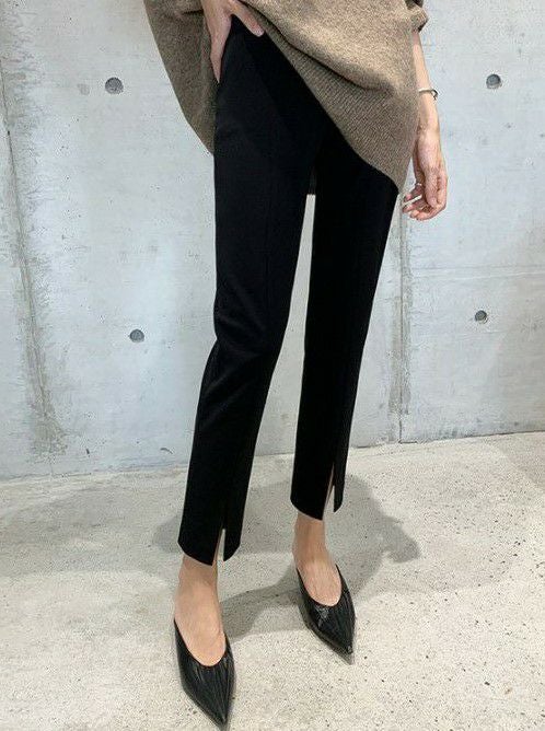予約 サイズ豊富 フロントスリット テーパード パンツ
