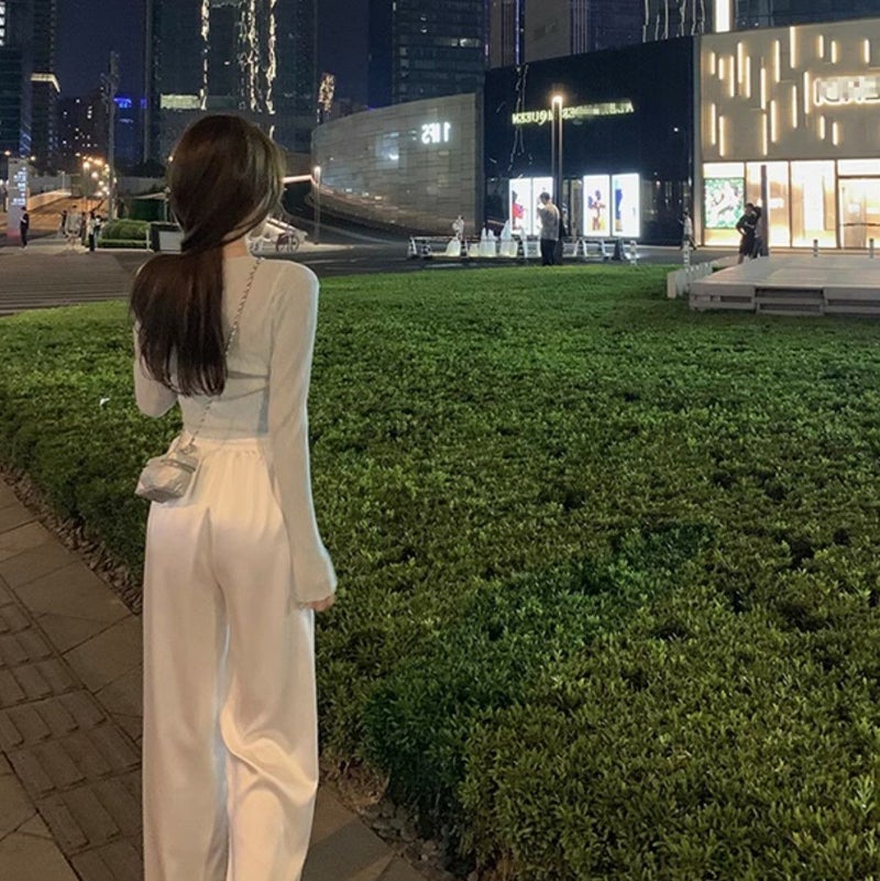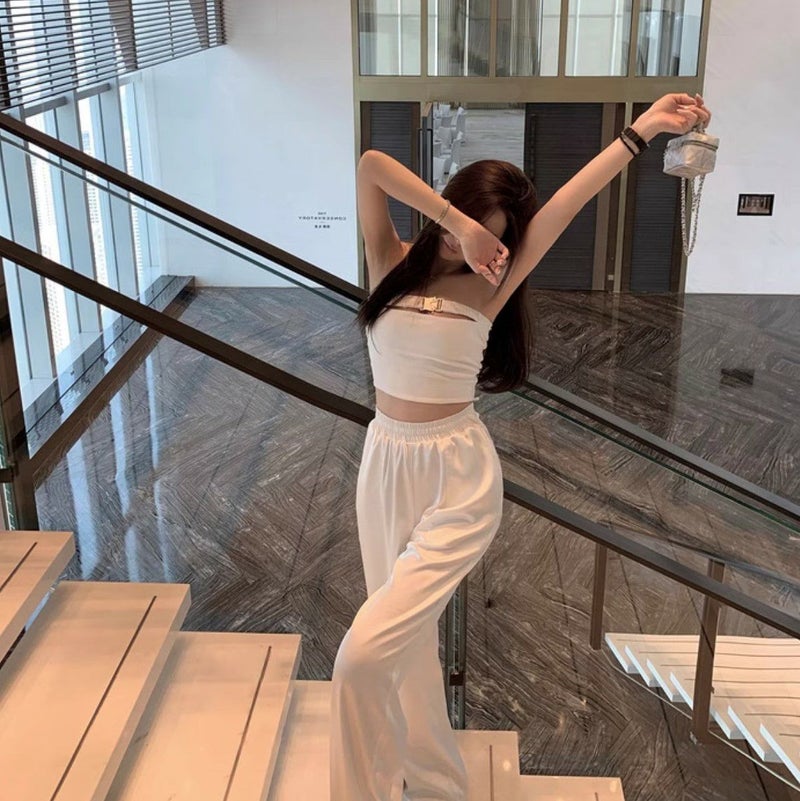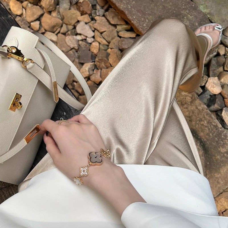 トレンドのサテンパンツ