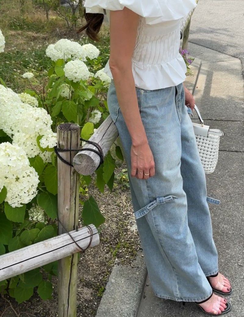 Ribbonがアシンメトリーにデザインされたデニム