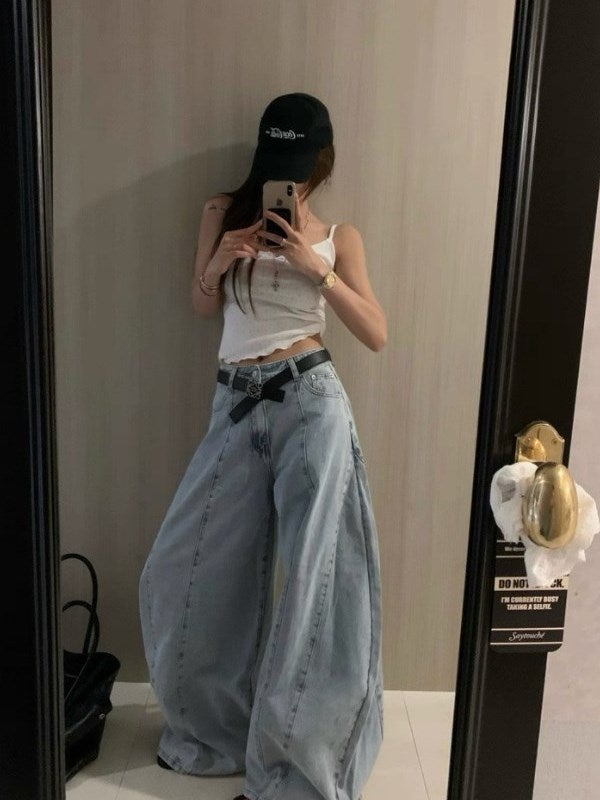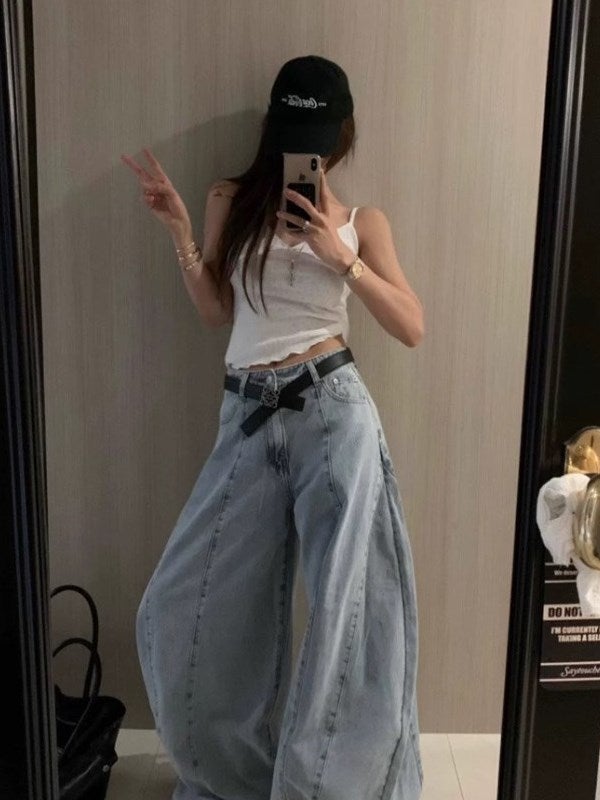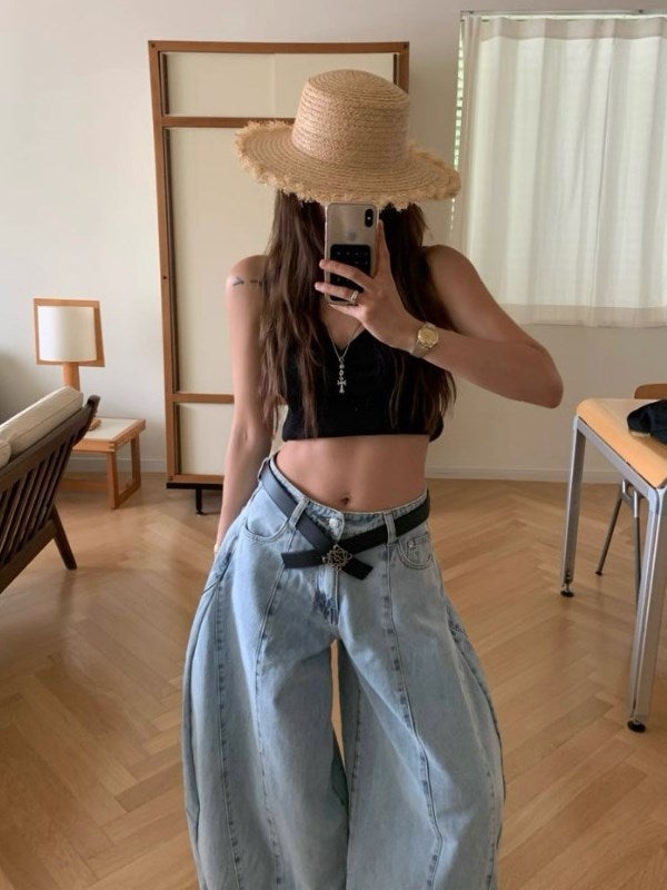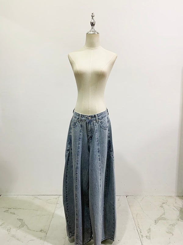 立体感のあるタックデザインが印象的なワイドデニムパンツ。
