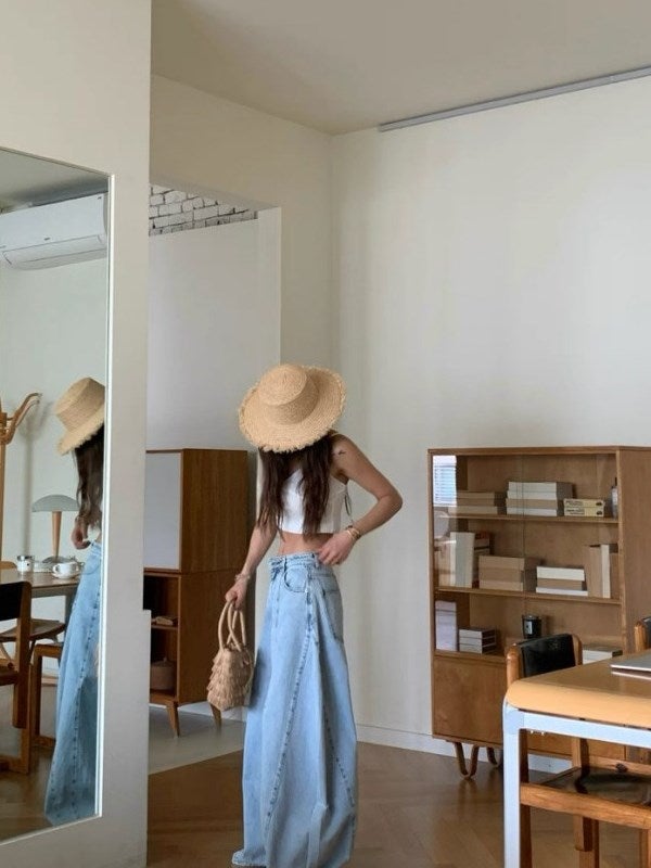 早期価格 予約 タックデザイン ワイドシルエット デニムパンツ