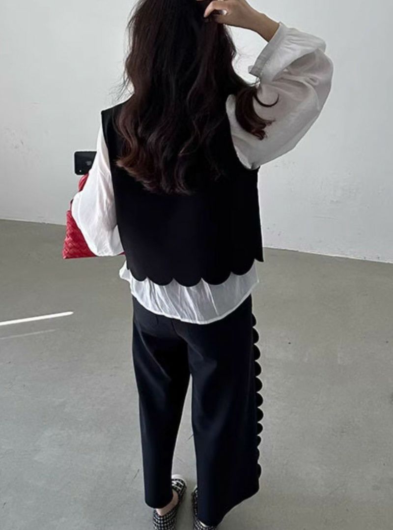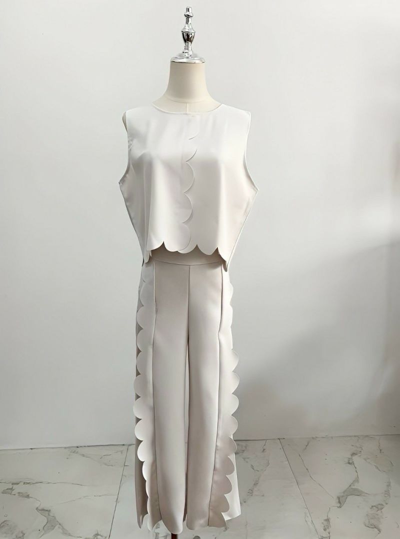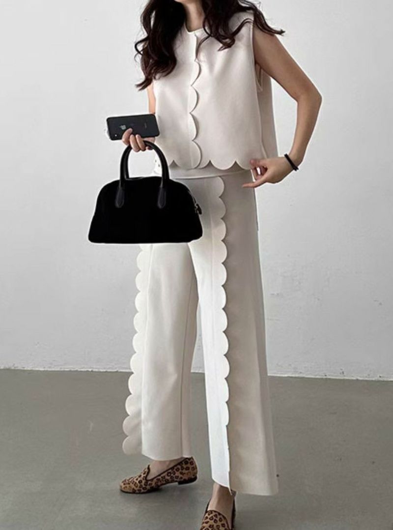 予約 スカラップ トップス ストレートパンツ セットアップ