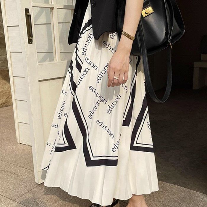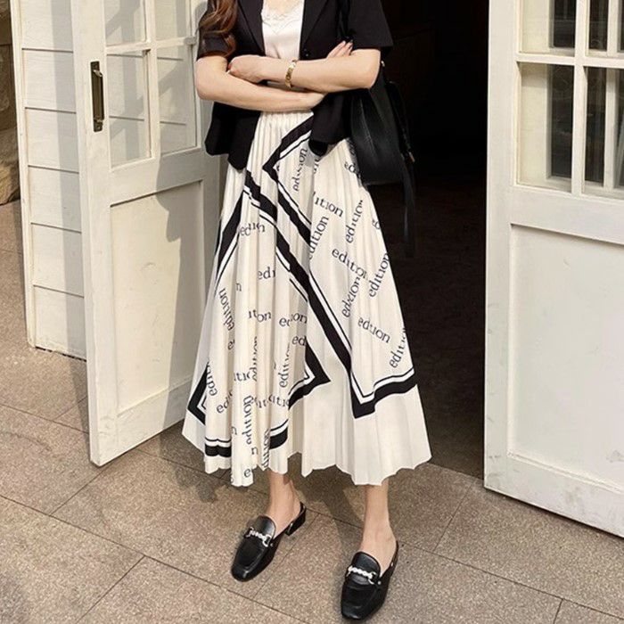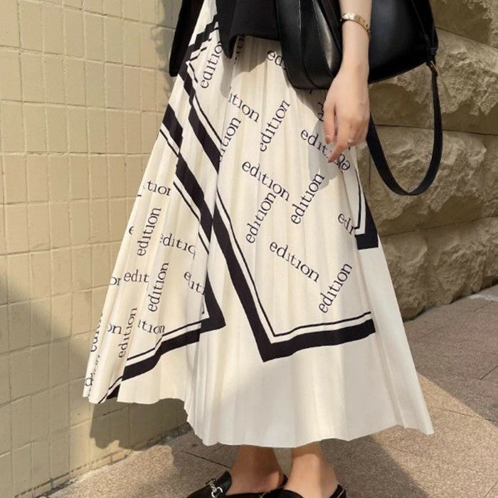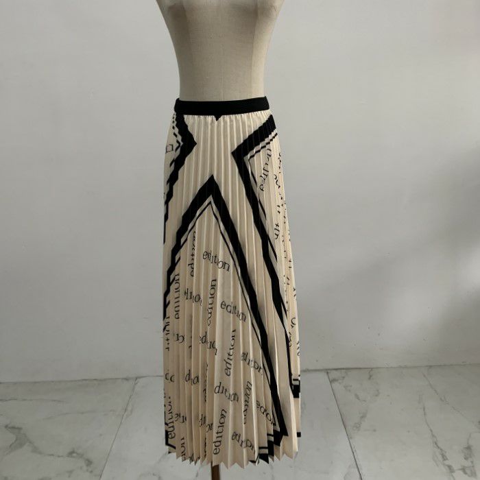 予約 LOGO プリーツ バイカラー フレアー スカート