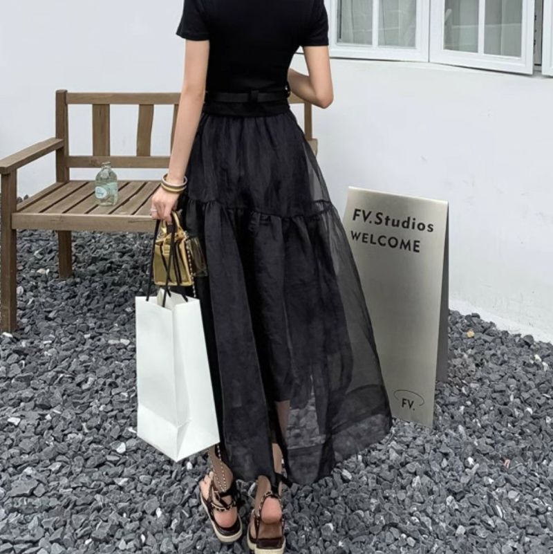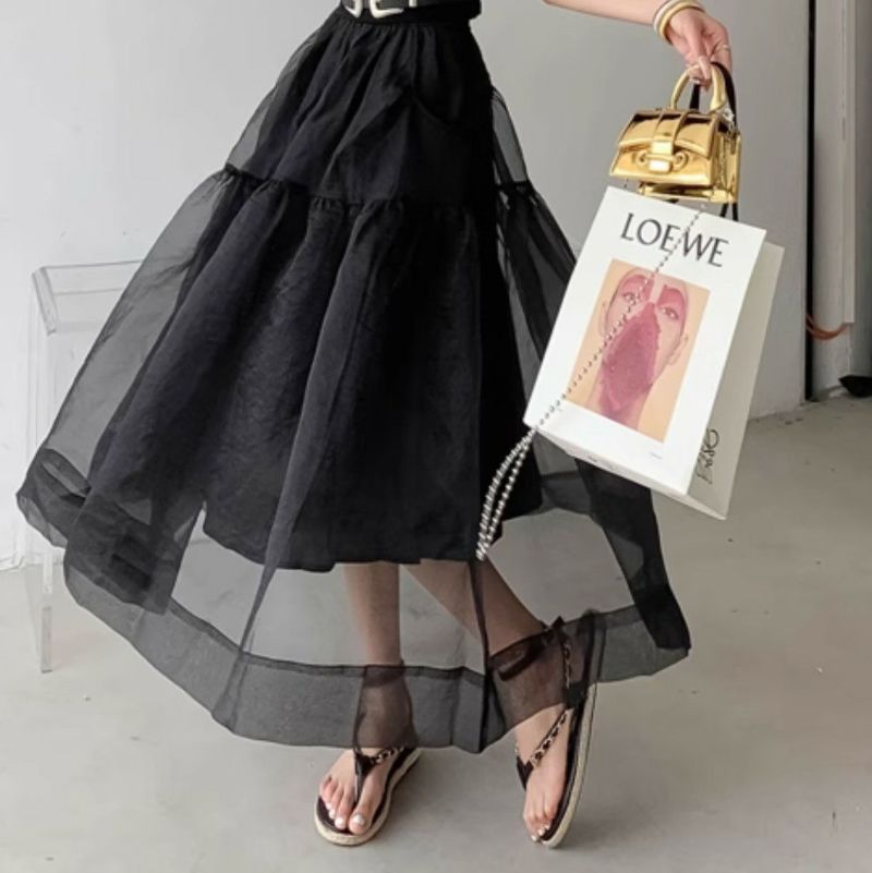 オーガンジーがレイヤードされたデザインスカート