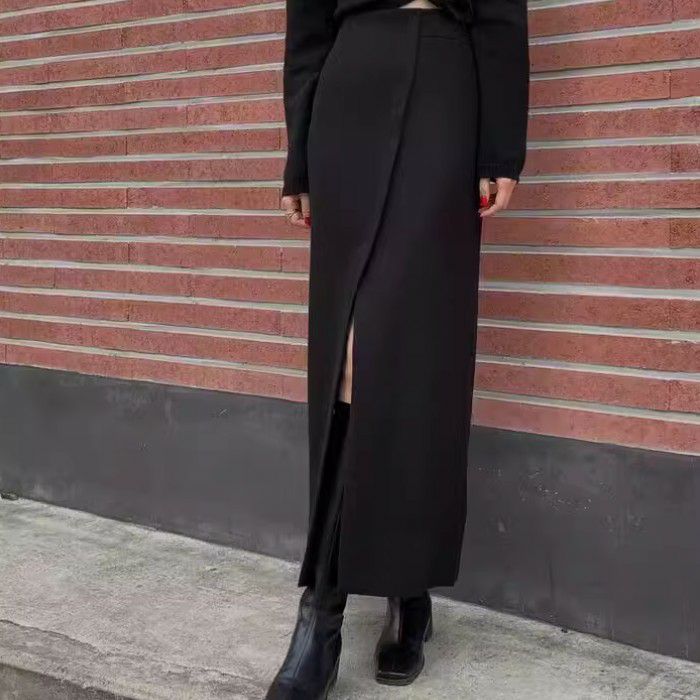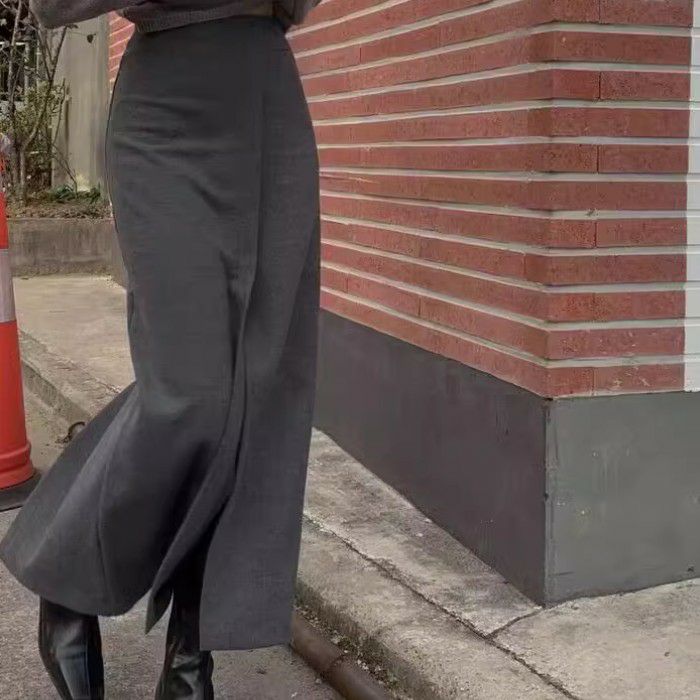 予約 2color フロント ダブル スリット デザイン ロング スカート
