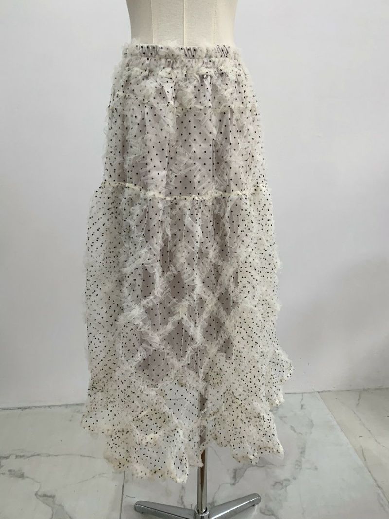 シアーなチュール素材にドットが華やかで可愛いスカート