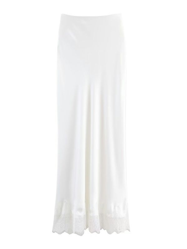 裾に繊細なレースをあしらった、上品なシルエットのロングスカート。