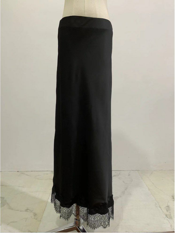 予約3color ヘム レース サテン ロングスカート