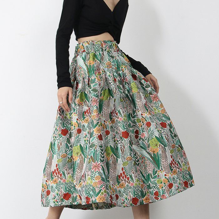 予約 2color ボタニカル 刺繍 フレアー スカート
