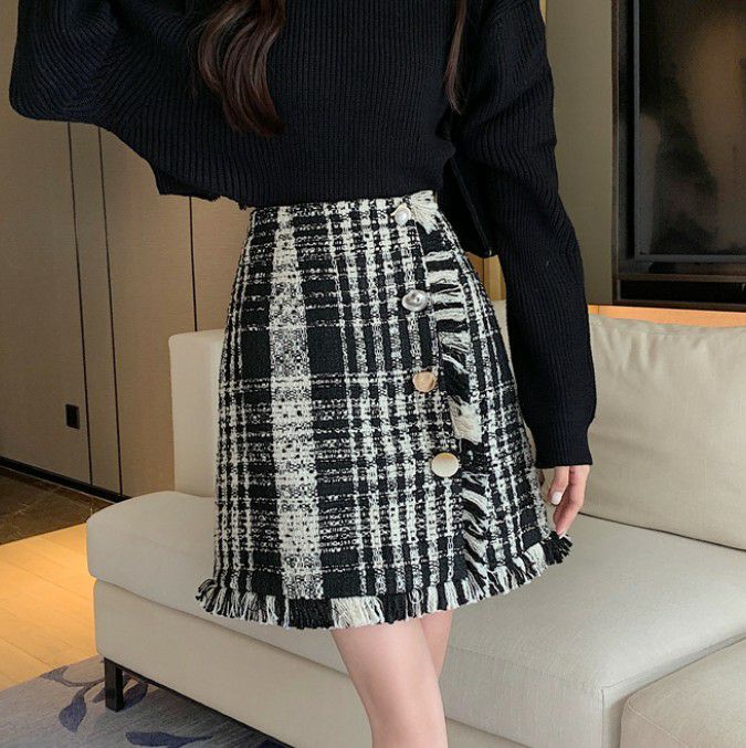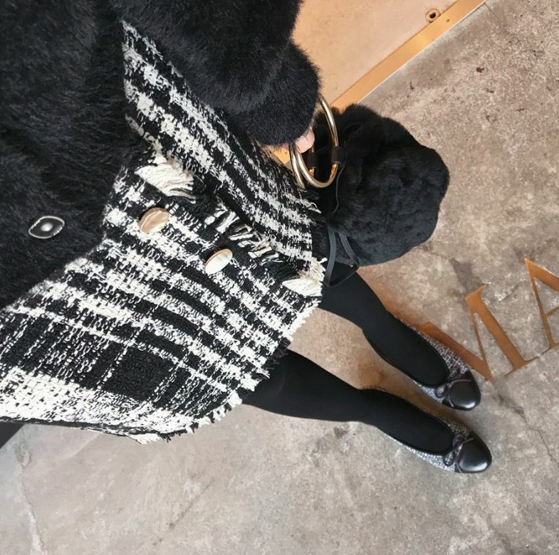 予約 モノトーン ツイード フリンジ ミニ スカート