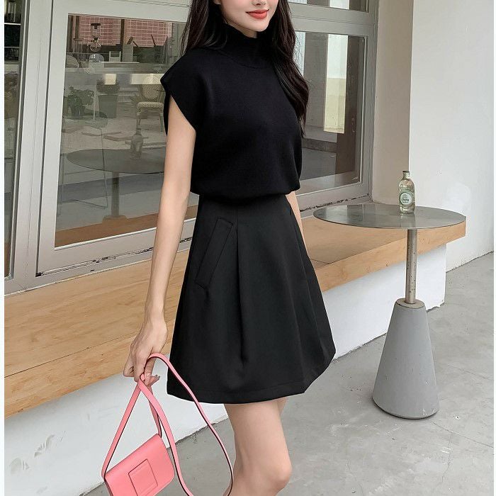 即納 2color タック タイト ボックス ミニスカート