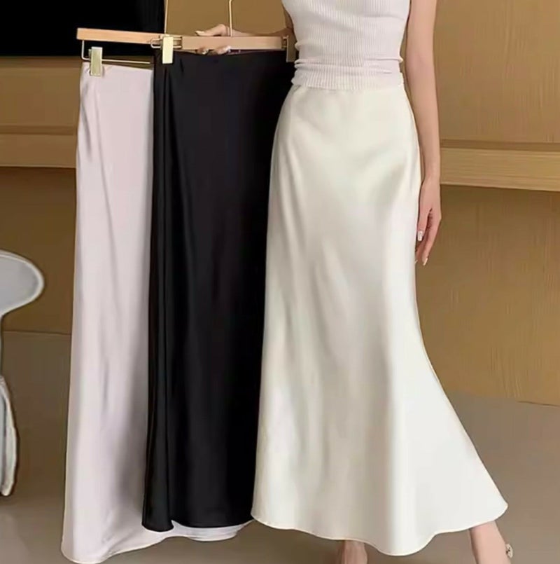 予約 3color サテン マーメイドシルエット フレア タイト ロング スカート