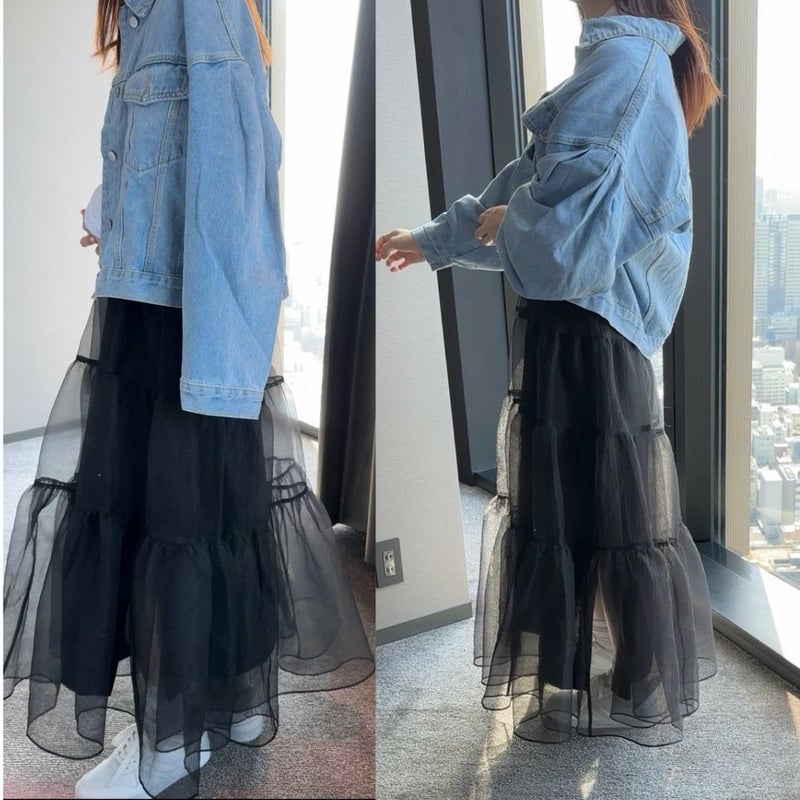 即納 Sサイズ販売開始 オリジナル 2color SUI シアー ティアード スカート