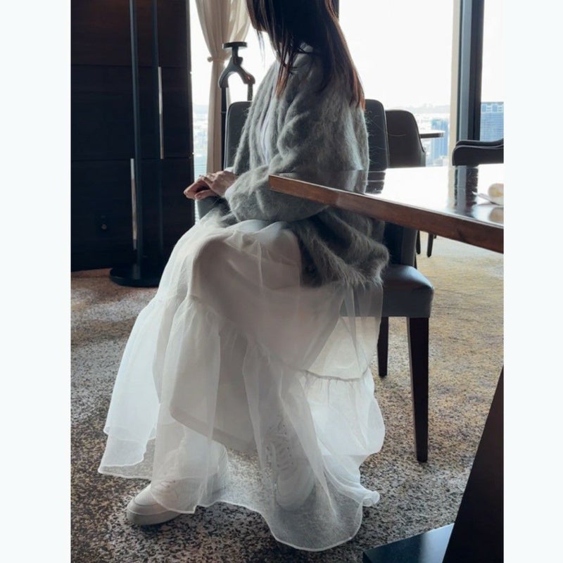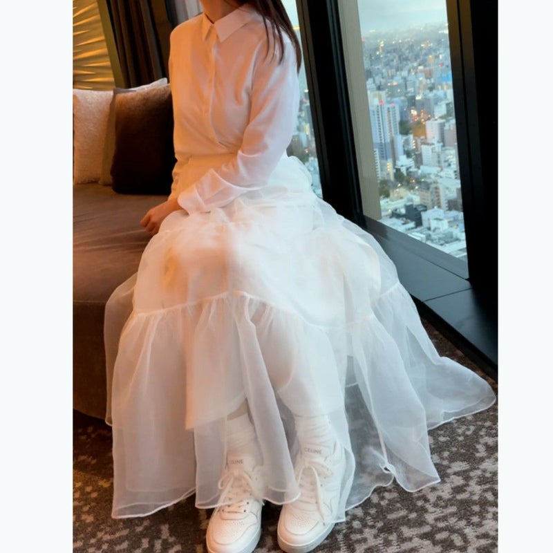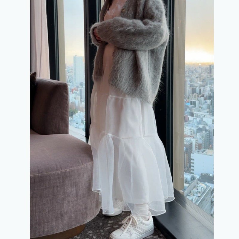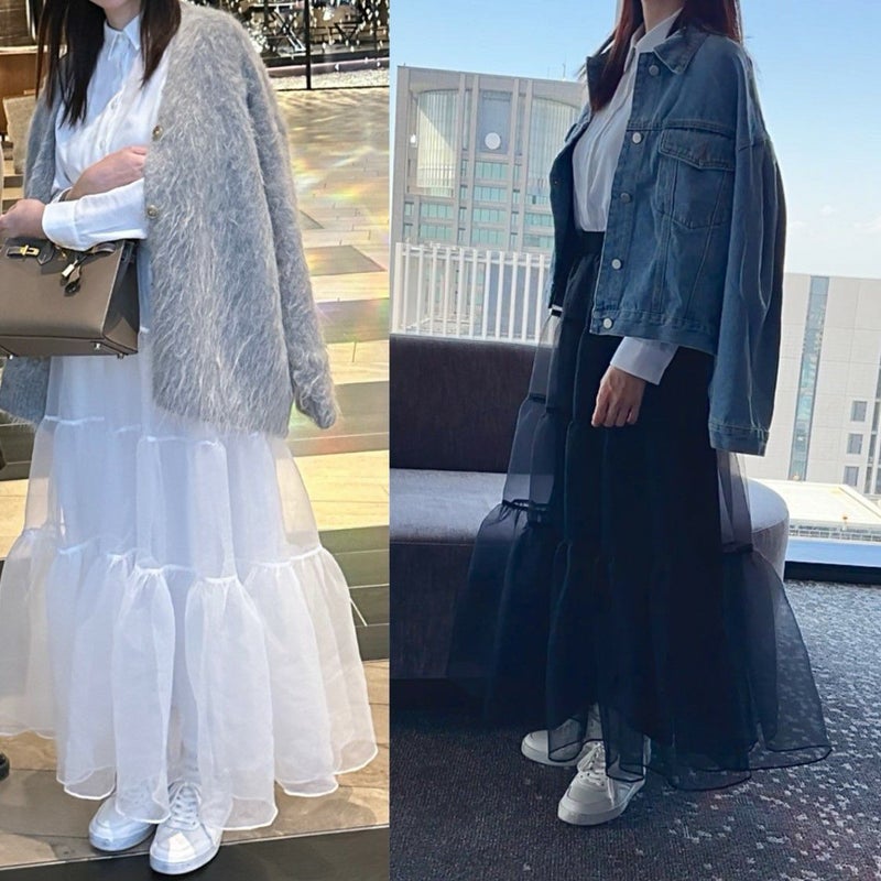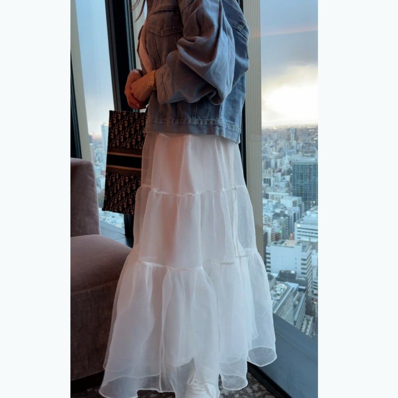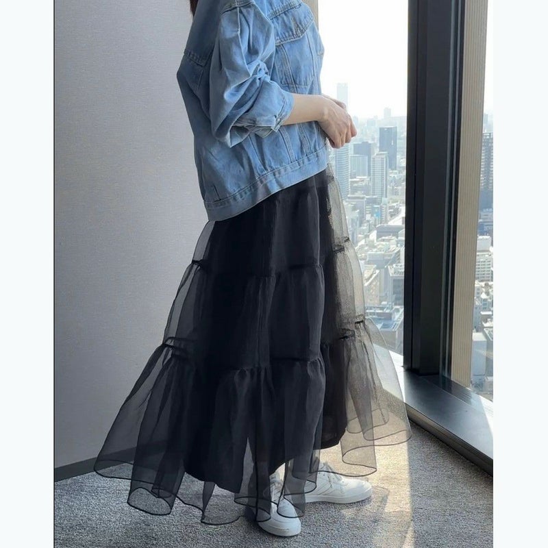 オーガンジーのシアー感が可愛いボリュームロングスカート