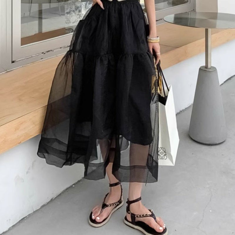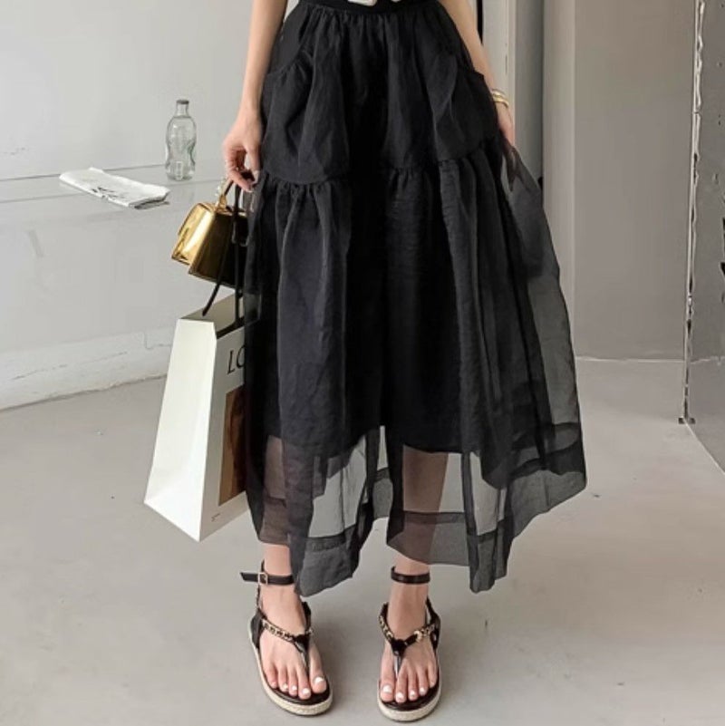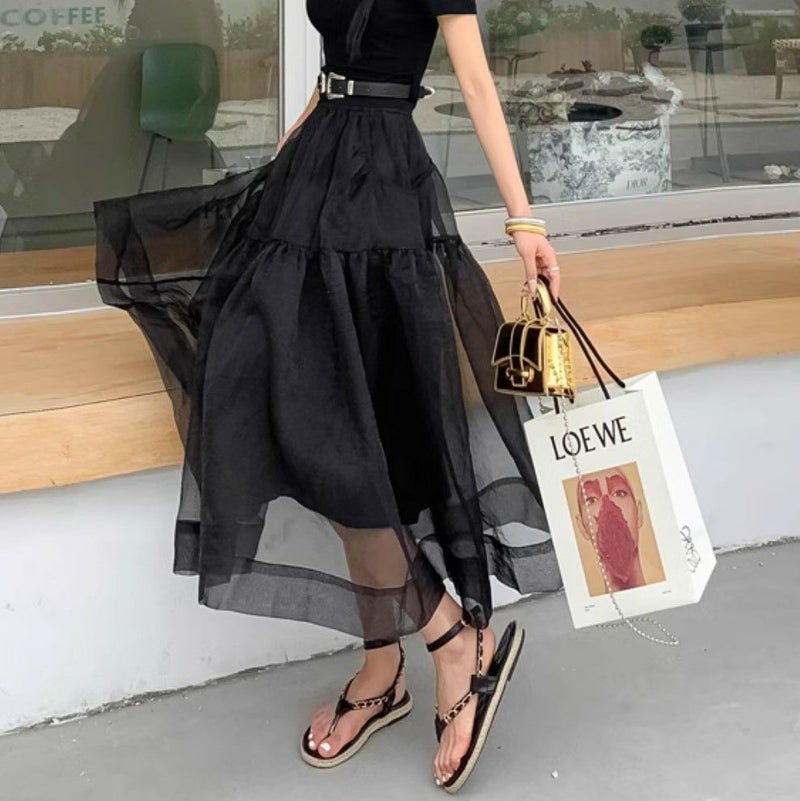 オーガンジーがレイヤードされたデザインスカート