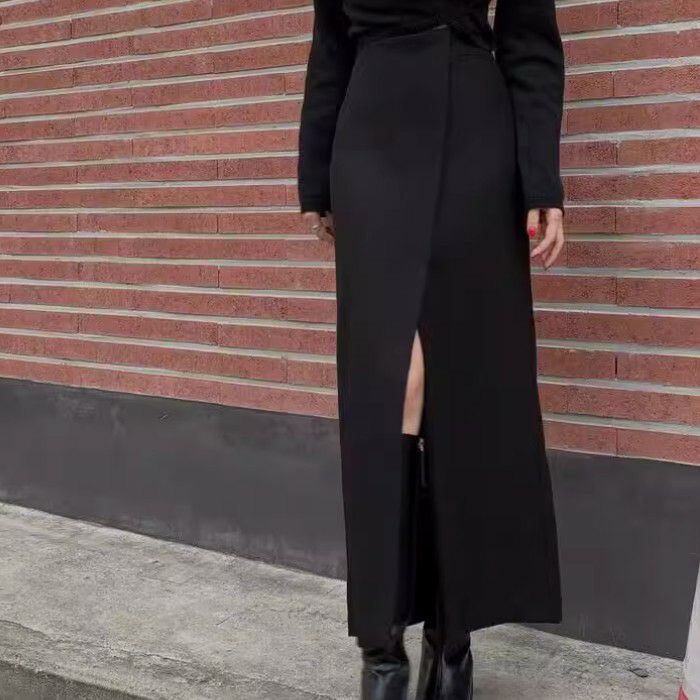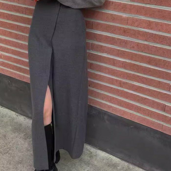 予約 2color フロント ダブル スリット デザイン ロング スカート