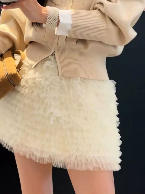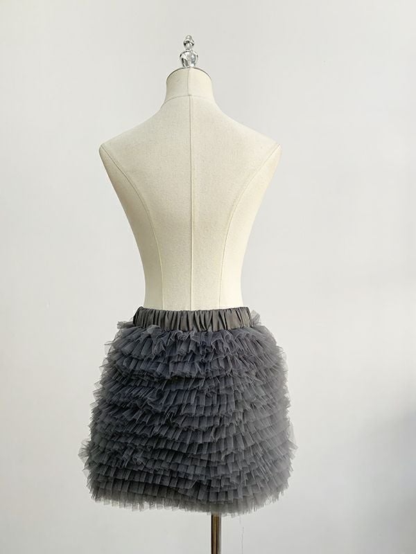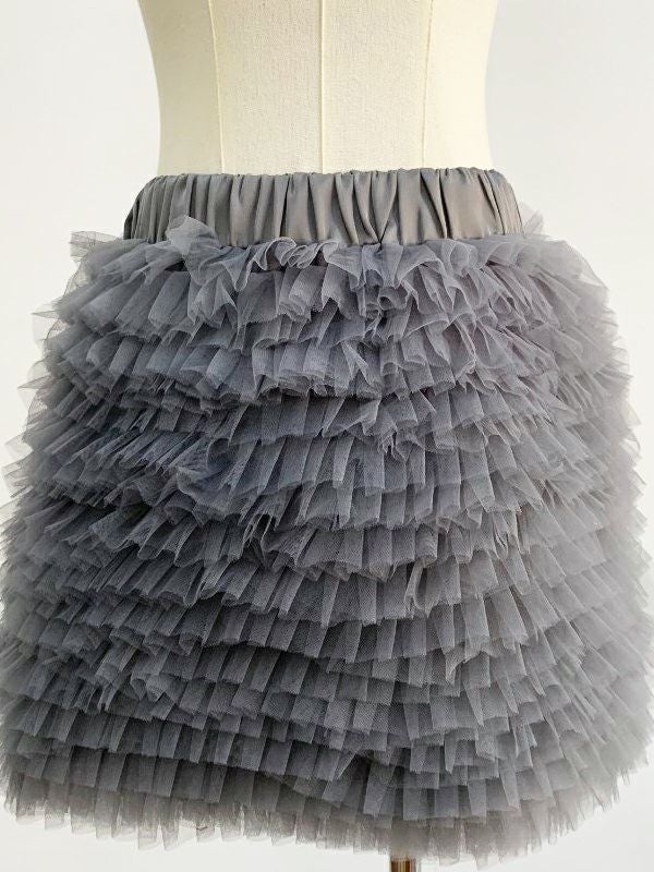 チュールを幾重にも重ねた、立体感のあるフォルムが魅力のミニスカート。