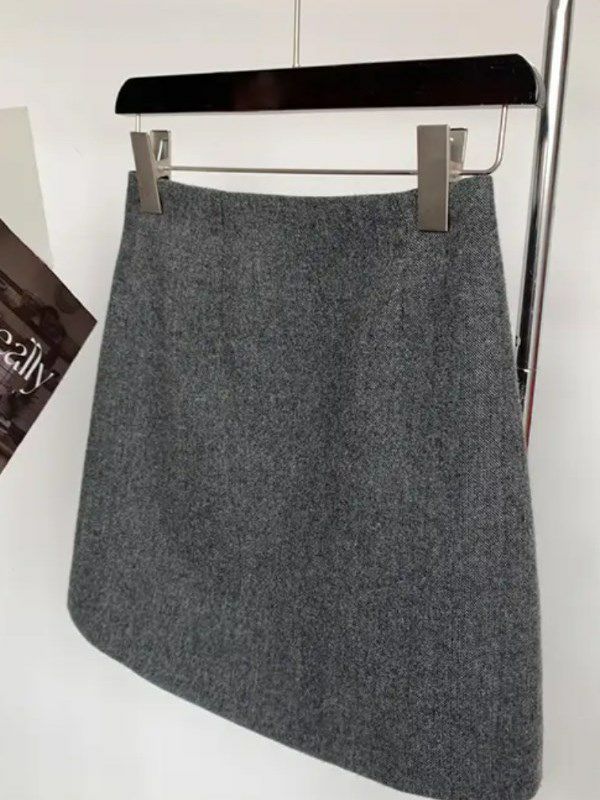 ウール調のウォーム素材が、季節感と上品な質感を添えるタイトミニスカート。